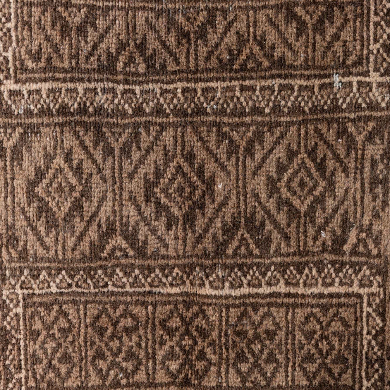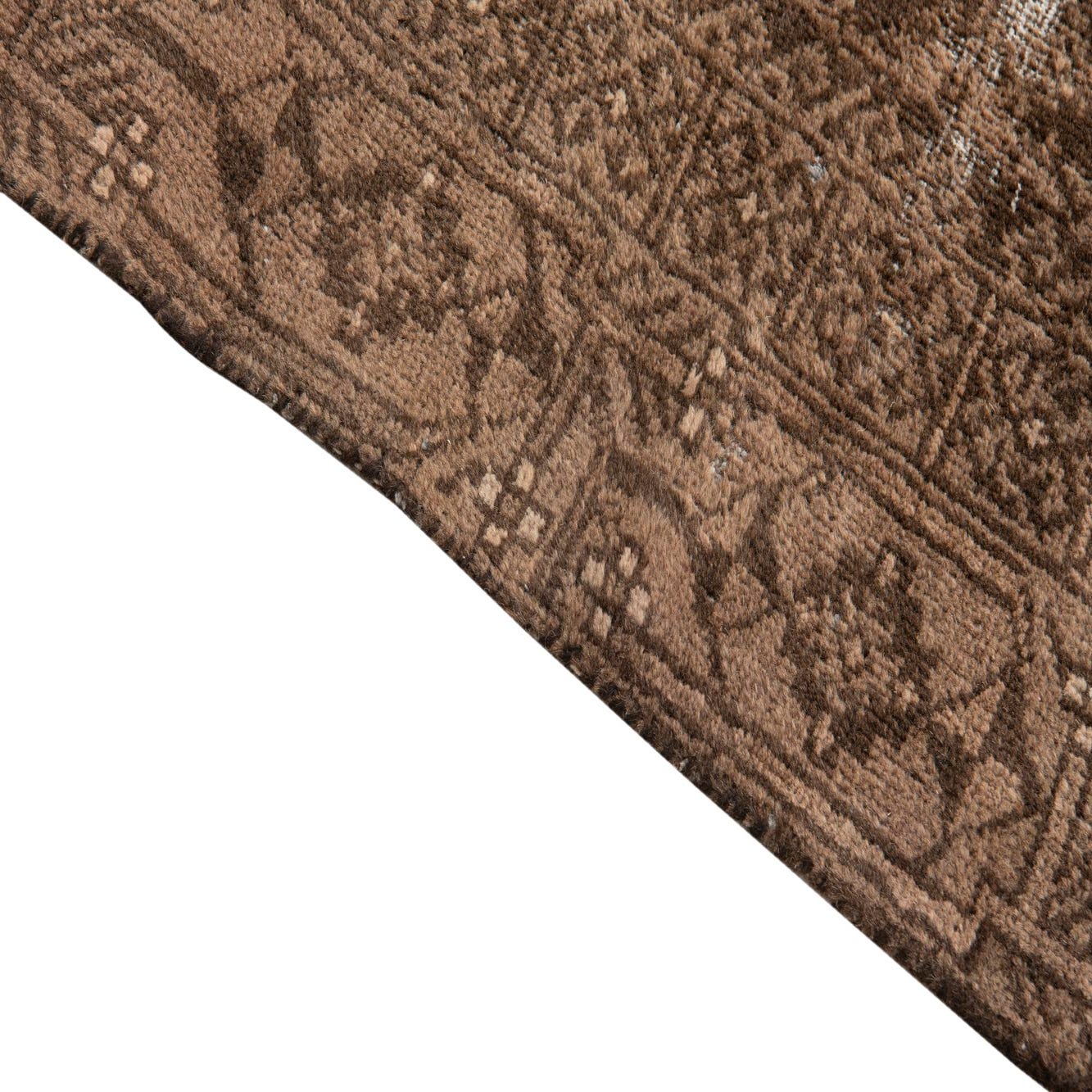 Primary color is Light Brown. Colors in this rug include: Light Brown, Brown, Ivory, Rust Red.