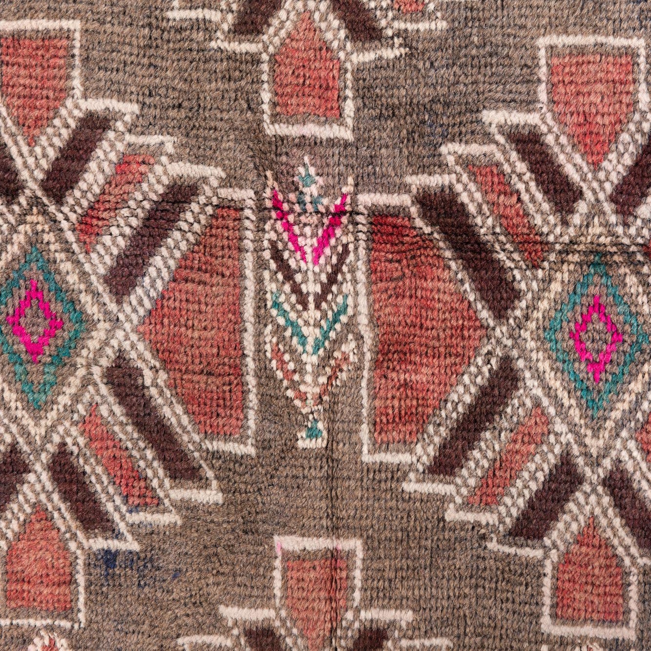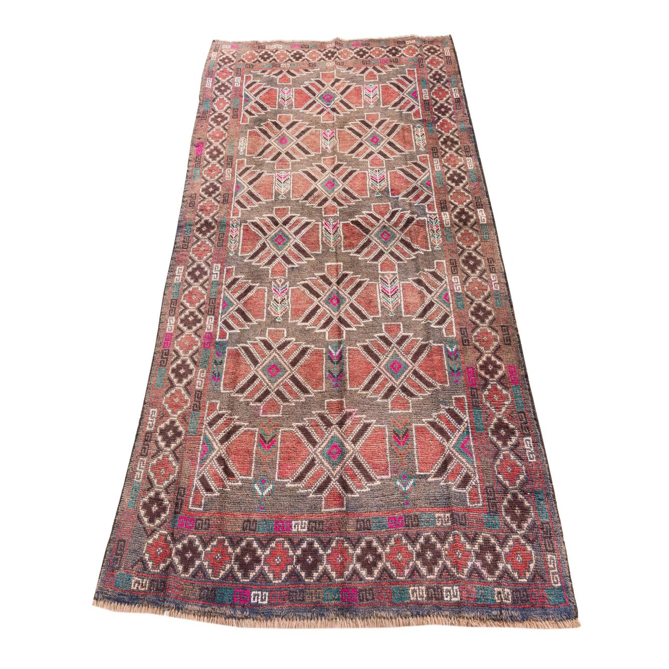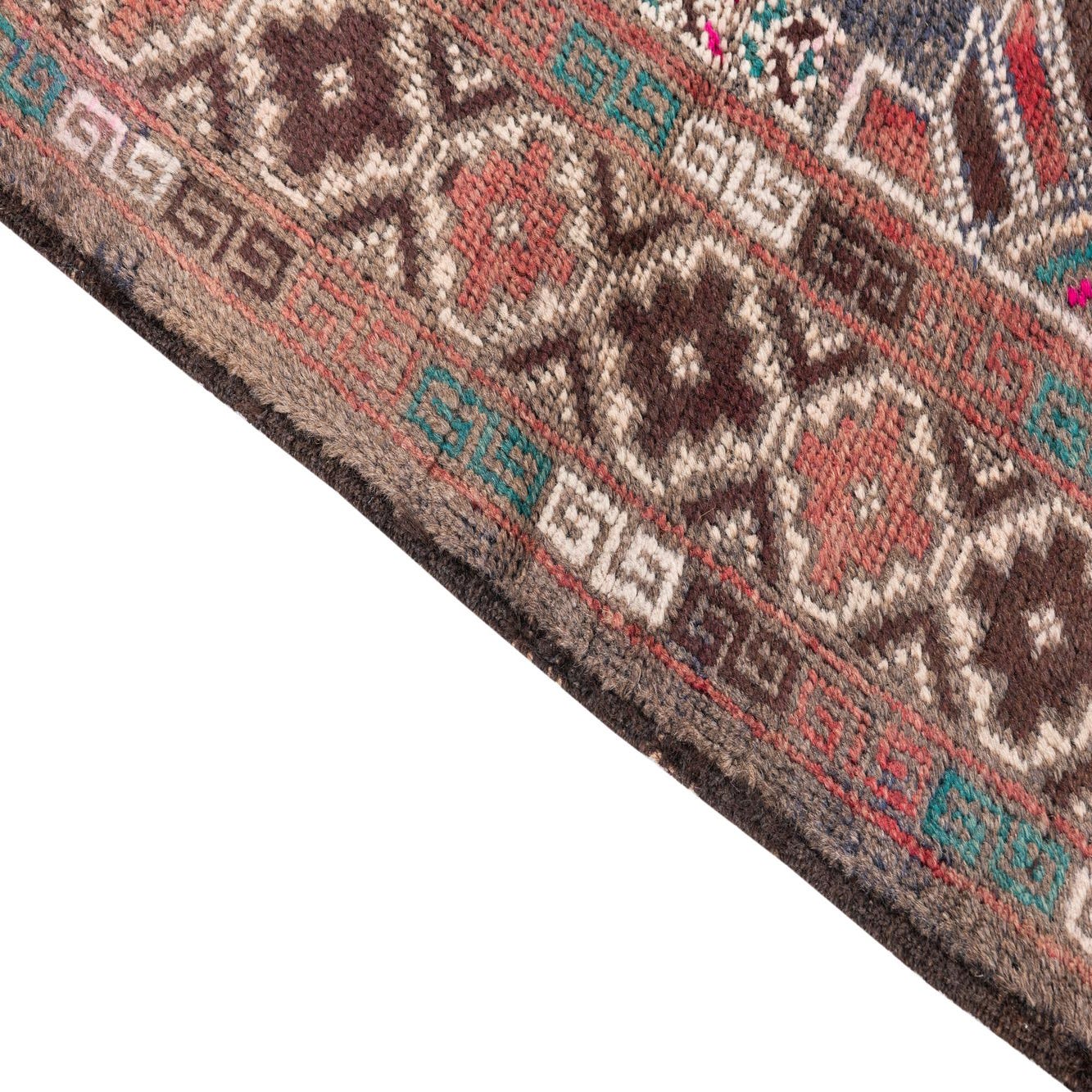 A 4x6 rectangular Ultra Vintage wool rug with a Persian-inspired geometric pattern in browns, tans, and hints of pink and teal.