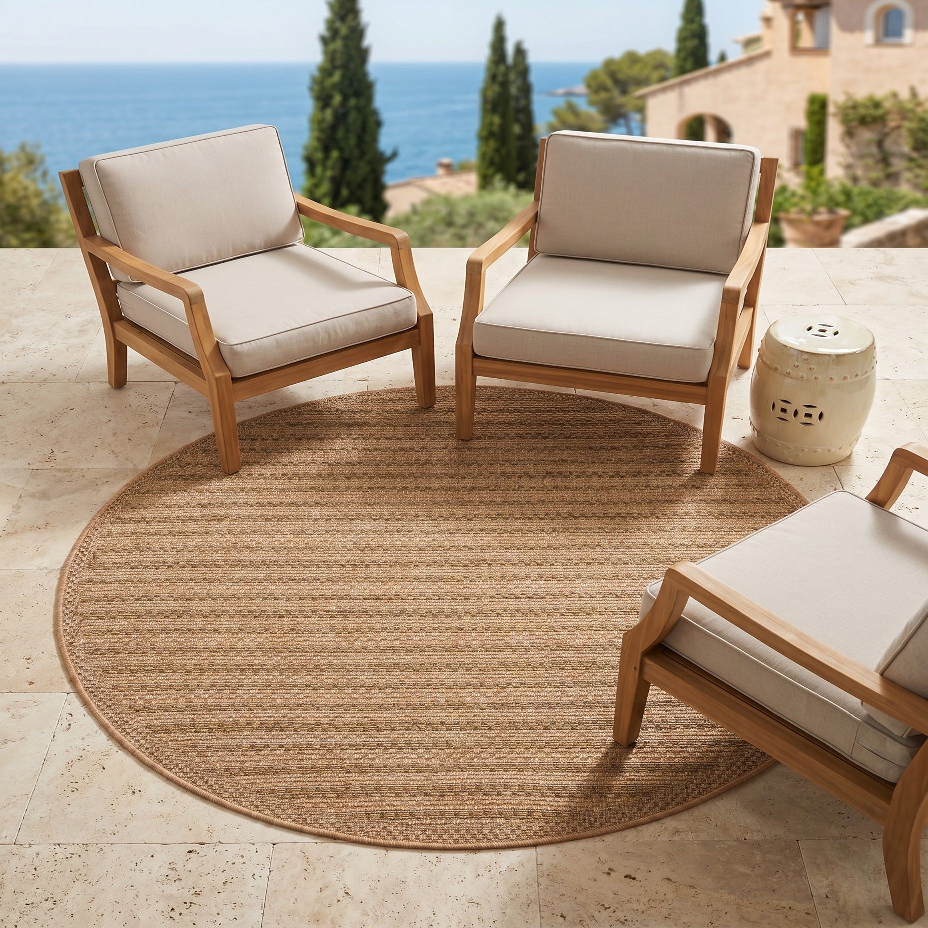 5' 3 x 5' 3 Easy-Clean Border Indoor / Outdoor Round Rug