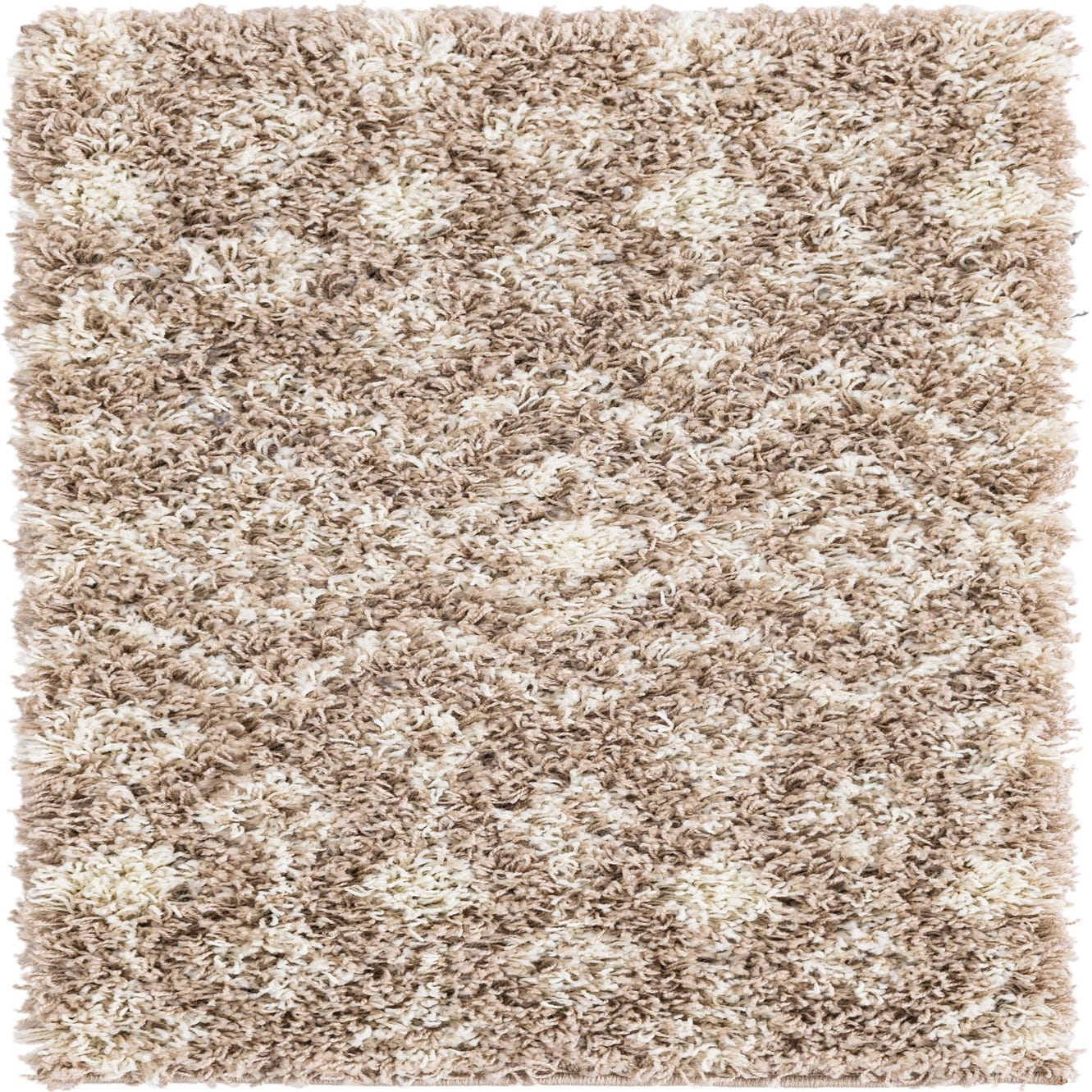 A 5 ft runner rug with a thick, textured shag pile in varying shades of brown and tan.