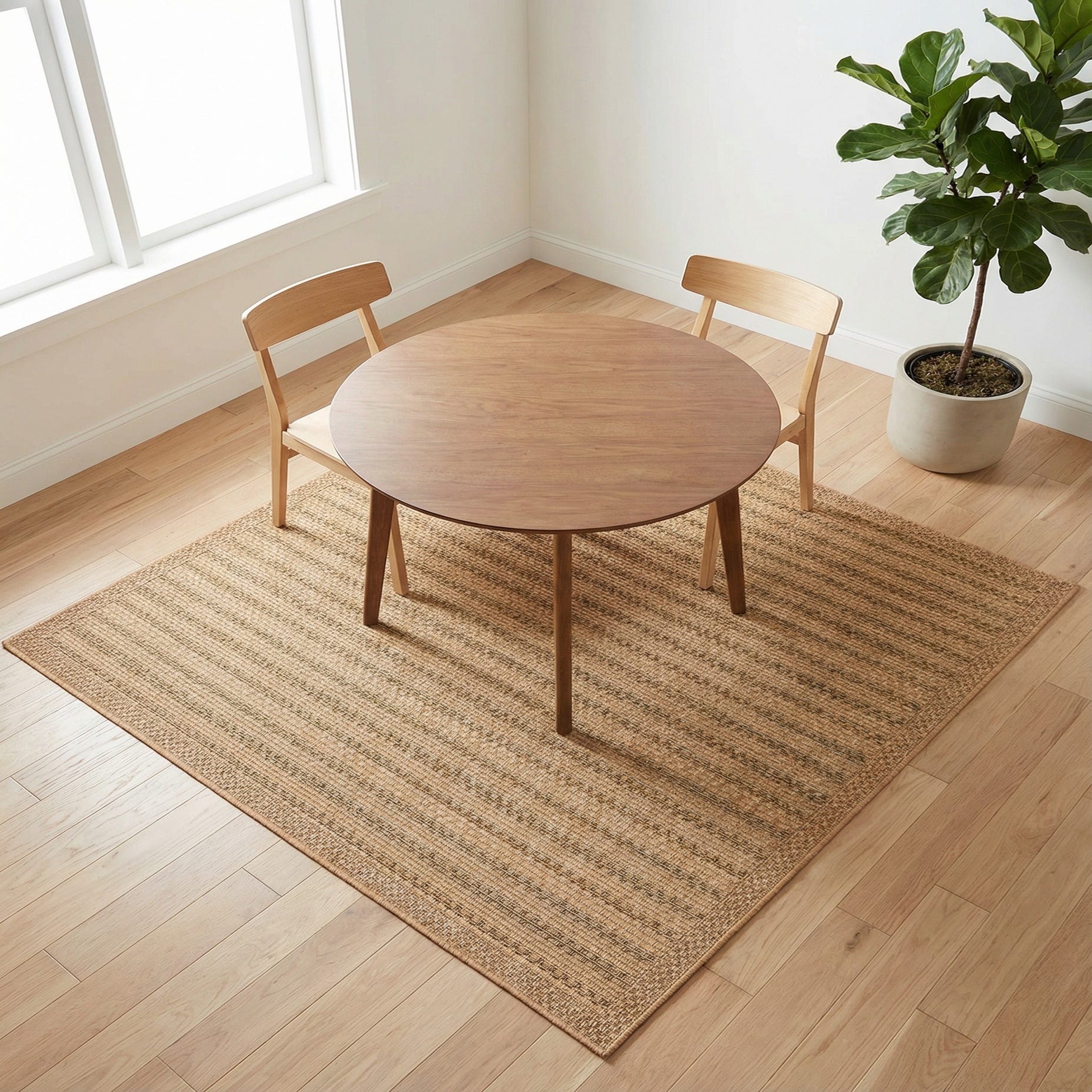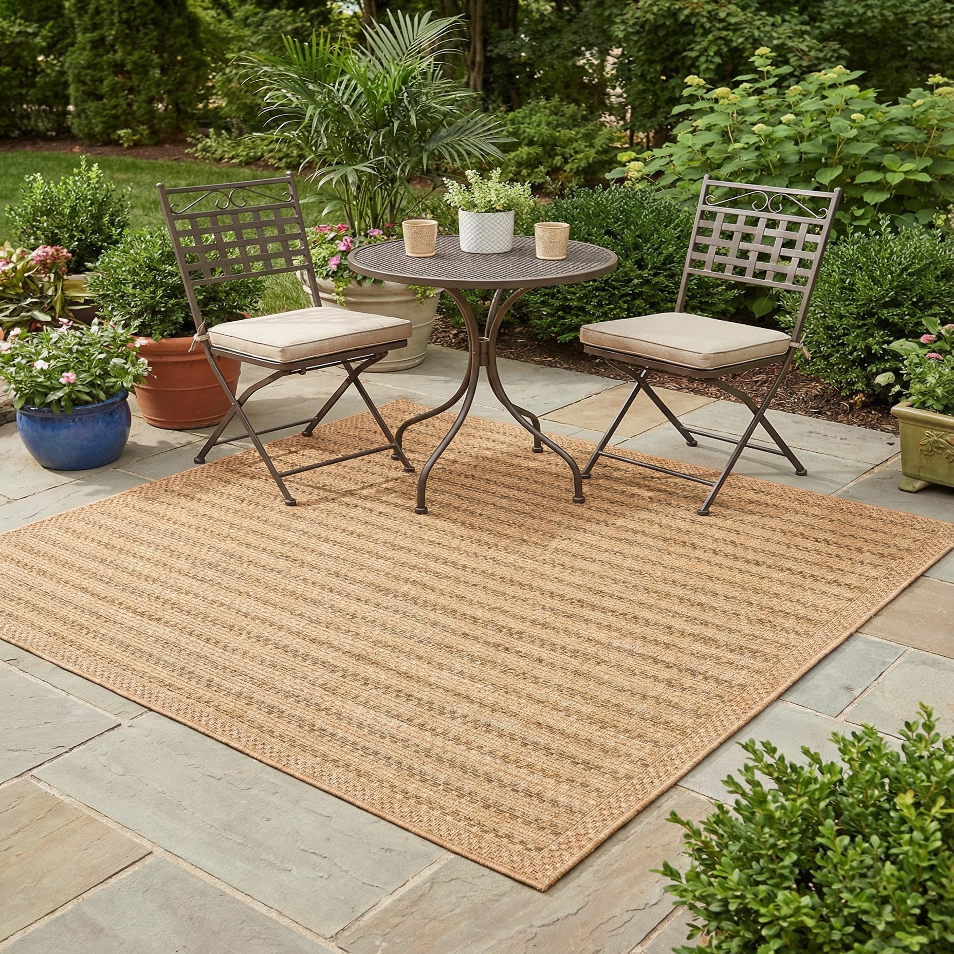 This rug’s casual, tailored look suits covered patios, sunrooms, and entryways, and pairs easily with wicker, rattan, or weathered wood furnishings. It’s also a good option beneath a bistro table on a porch or layered under outdoor seating to warm a seating area while keeping the overall palette neutral and inviting.