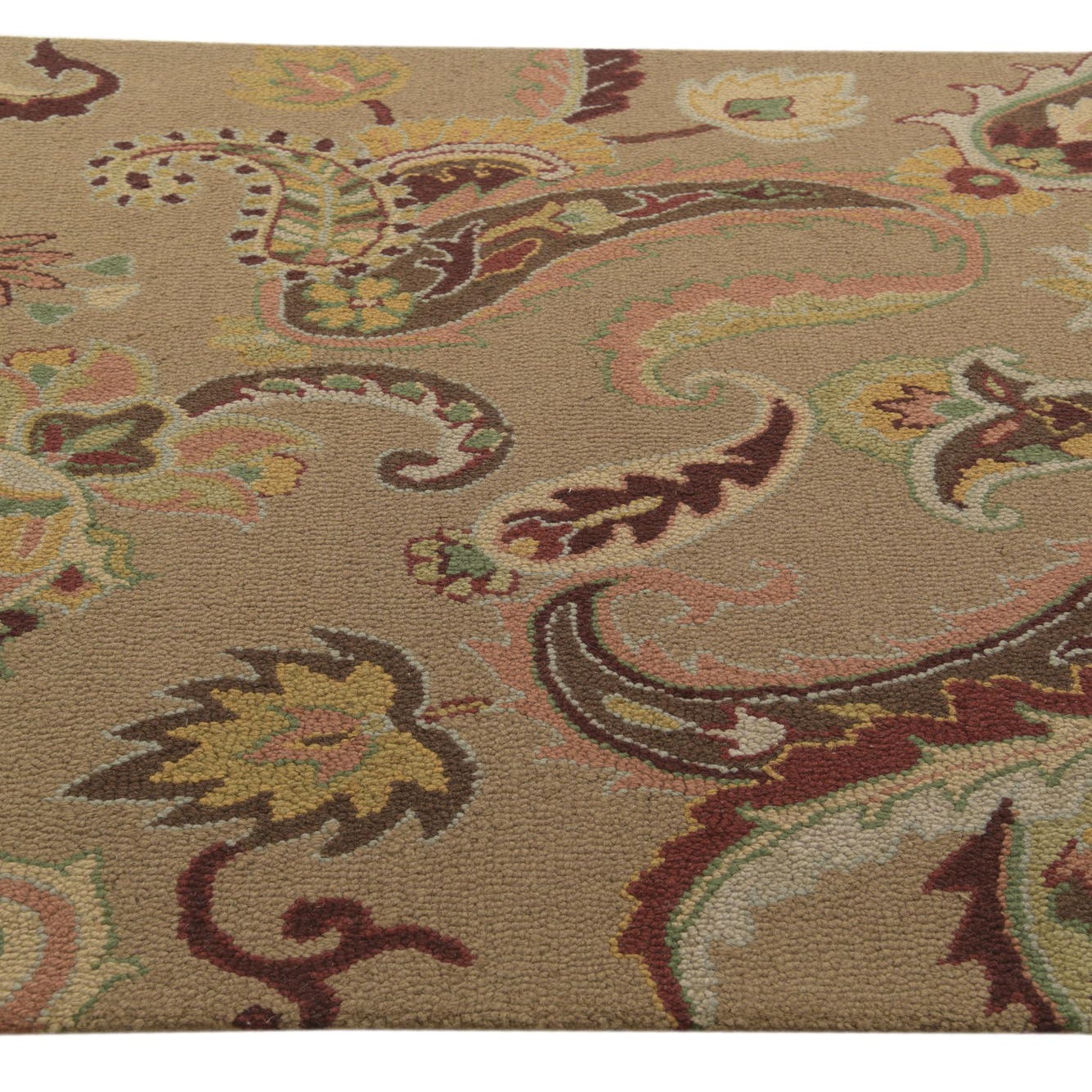 The rug showcases a traditional pattern featuring a floral and paisley motif that provides a sense of time-honored elegance and sophistication to any space. The intricate detailing and balanced use of color give the rug a versatile aesthetic, suitable for complementing a range of design themes—from classic to transitional interiors.