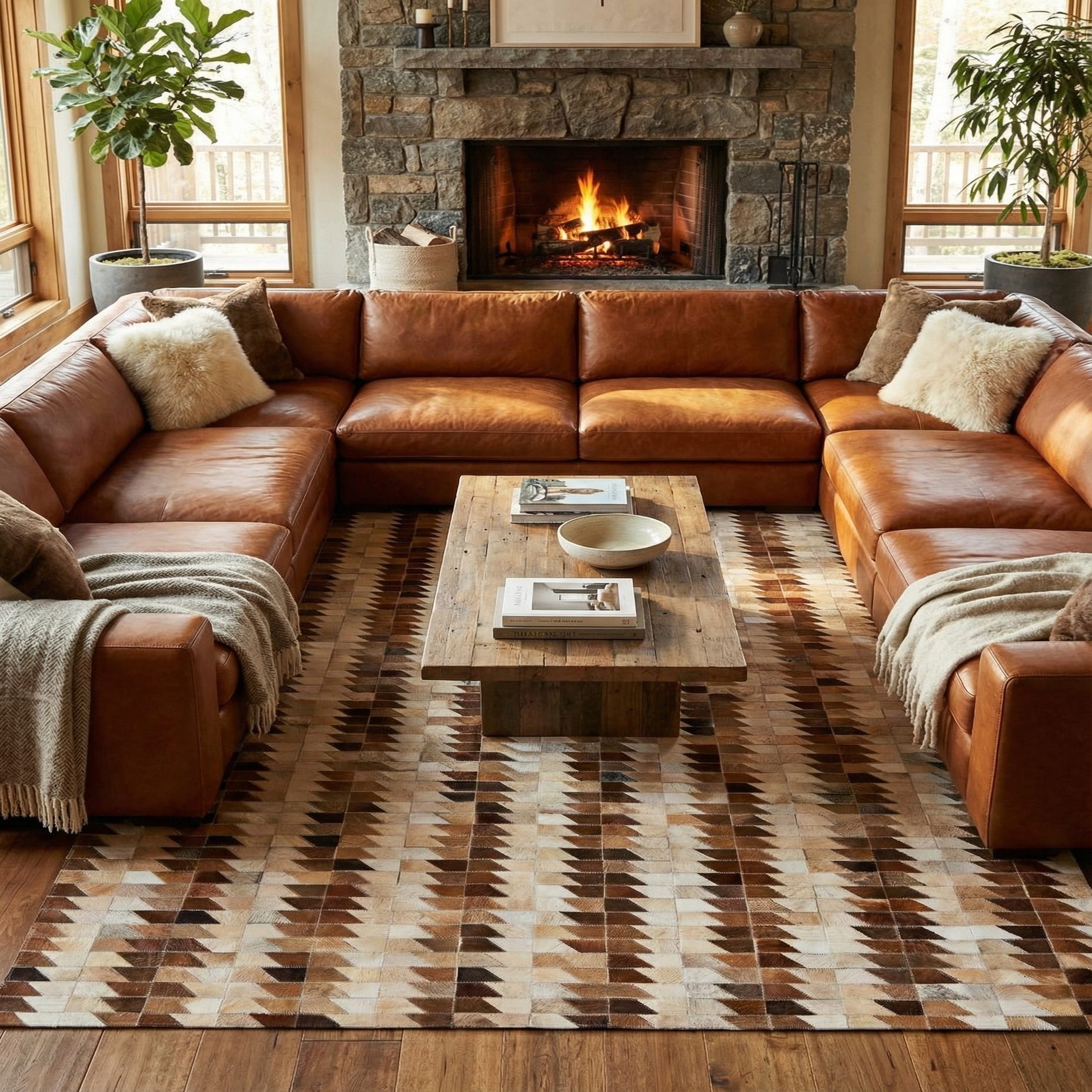 With its genuine cowhide and leather construction, this piece boasts a rich texture that is both visually appealing and tangible underfoot. The variation in tones and natural markings of the hides contribute to this rug's unique character and ensures that each piece is one of a kind.