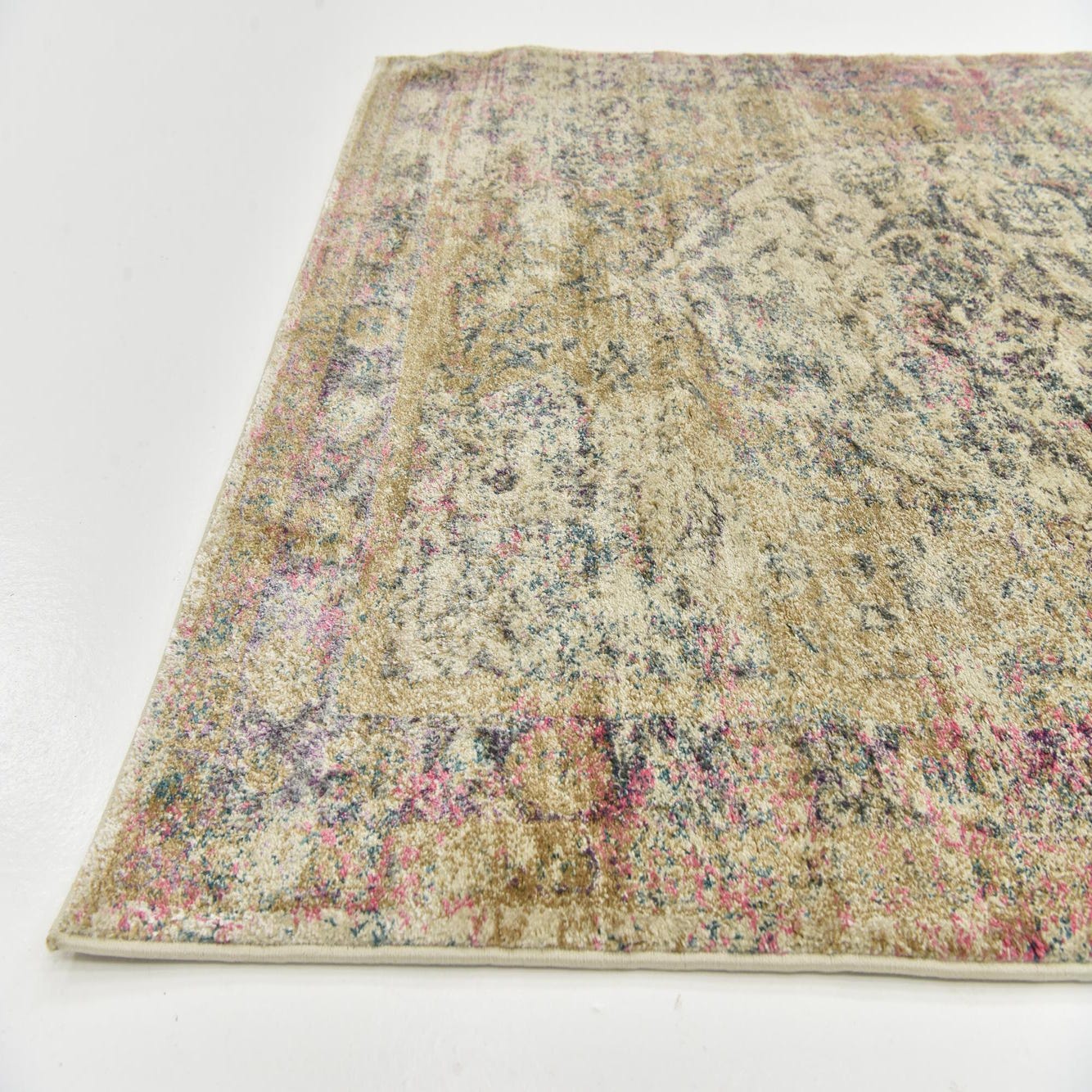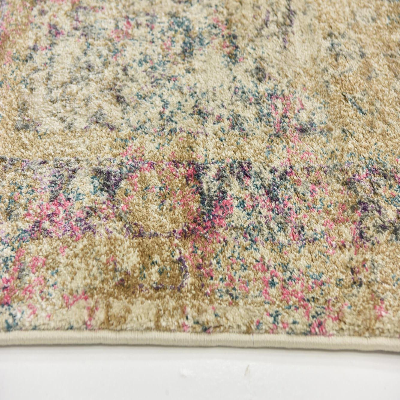 Primary color is Light Brown. Colors in this rug include: Light Brown, Beige, Blue, Brown, Gray, Ivory, Pink, Violet.