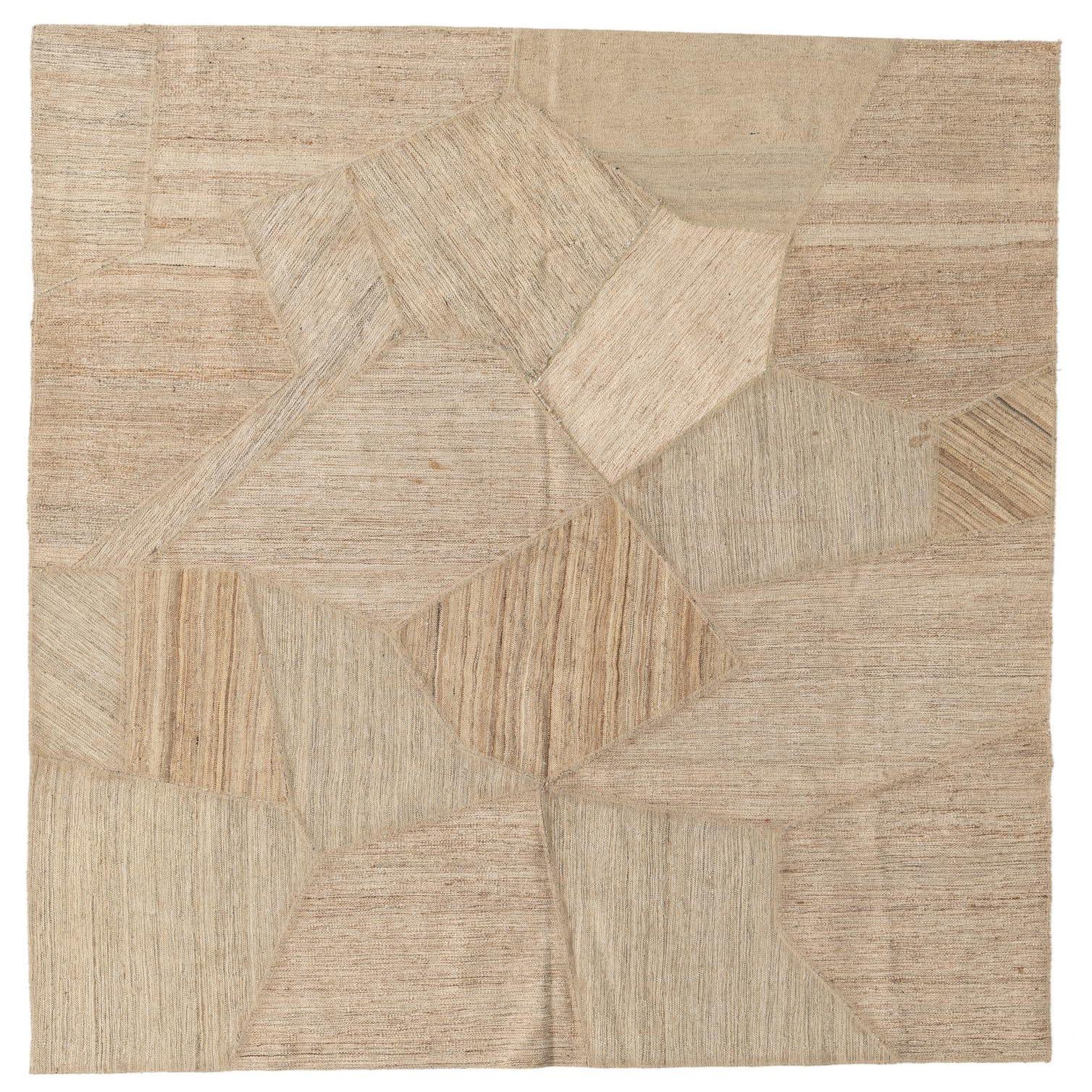 The earthy color palette renders this rug highly adaptable to a variety of interior design scenarios. It could seamlessly integrate into a minimalist decor scheme, adding warmth without overpowering the space. Its simplicity and clean lines also make it an excellent choice for a Scandinavian-inspired aesthetic, where its natural wool texture and soothing colors would contribute to a calming environment. Furthermore, this Kilim Patchwork would enrich a rustic setting, harmonizing with natural materials and a neutral color scheme.