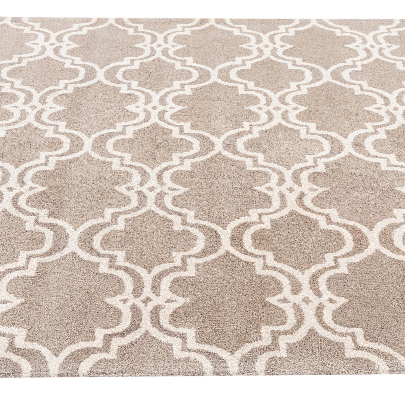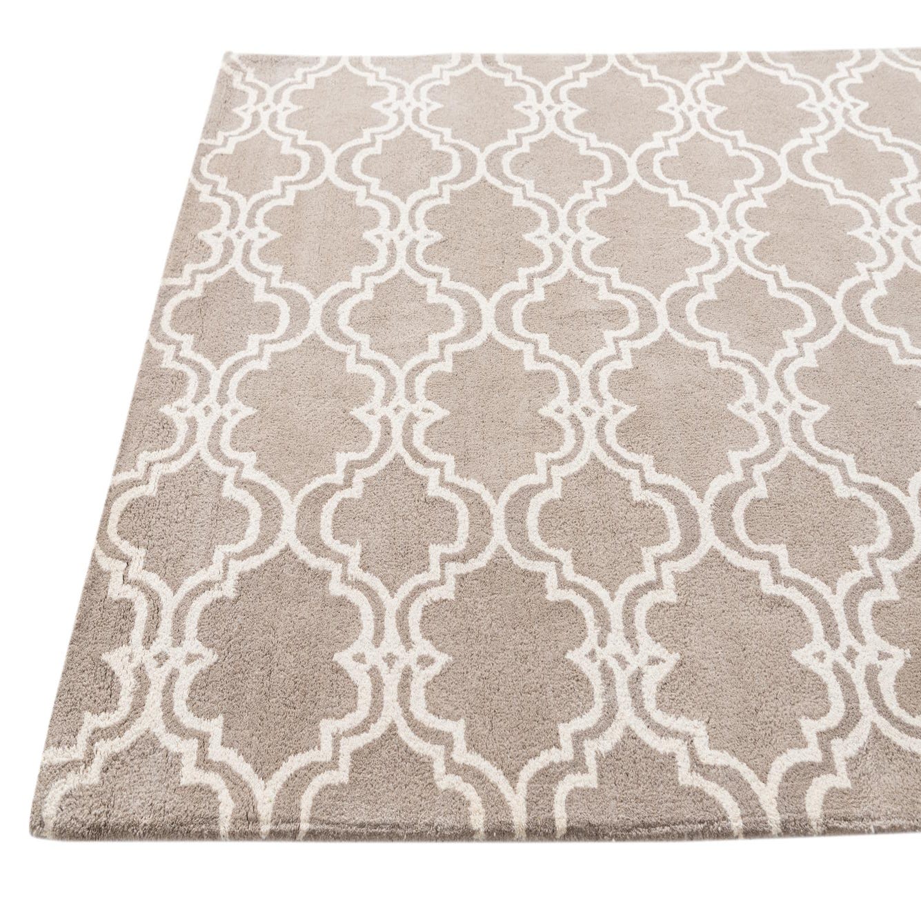 The Luna Hand Tufted collection presents a sophisticated area rug woven from a blend of wool and cotton. This 5x8 piece showcases a light brown background with a recurring ivory pattern that offers a modern take on the classic trellis design. The elegant geometry of the pattern imparts a sense of structured beauty, making it a versatile choice for a variety of decor styles.