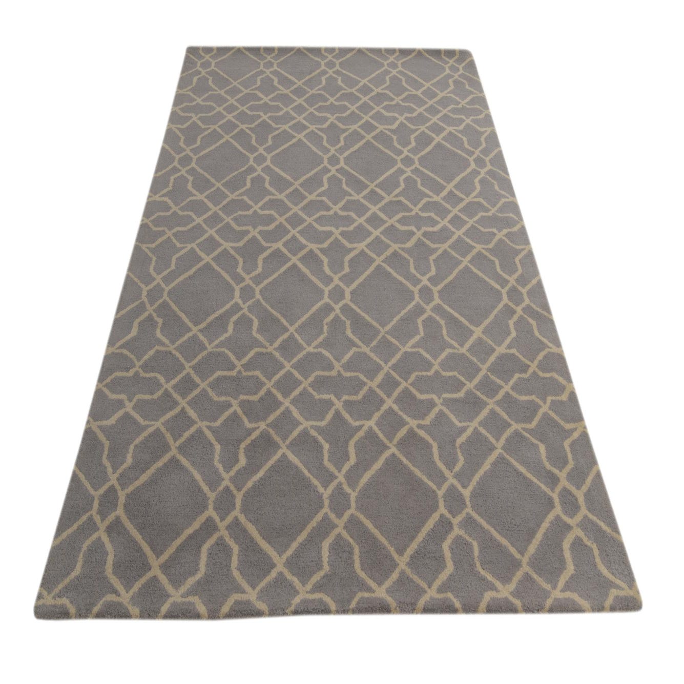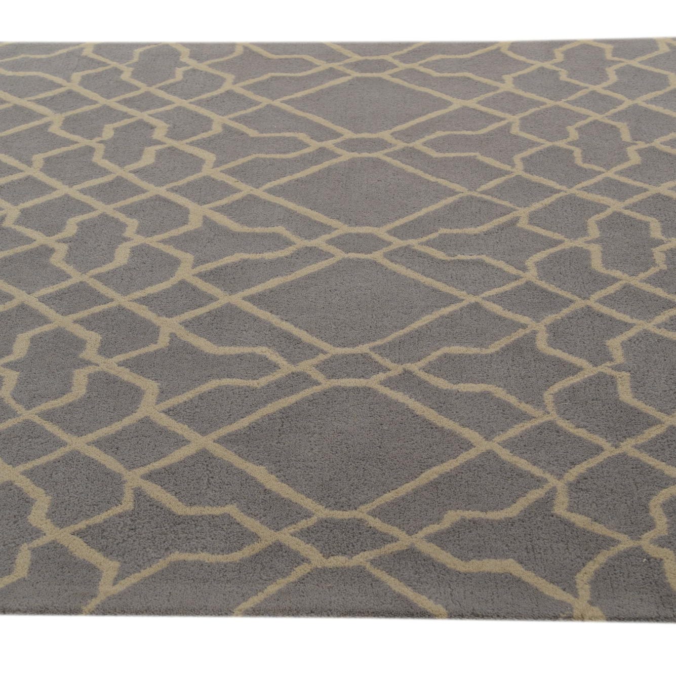 The Luna Collection offers a 5x8 area rug hand-tufted of 100% wool, showcasing a well-defined pattern that features a light brown backdrop with a contrasting ivory trellis design. The geometric interplay is both modern and versatile, suitable for anchoring furniture in a living room, or as a stylish complement to a dining room. The natural texture of the wool provides a plush, inviting surface underfoot. This rug's neutral palette and contemporary pattern integrate seamlessly with a variety of interior styles, from minimalistic to eclectic, yet its design is simple enough not to overpower a room's aesthetic. The substantial wool construction suggests longevity and an appreciation for natural materials.