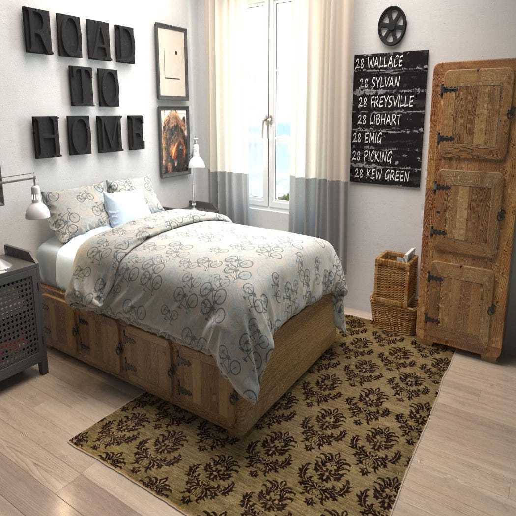 A 5x8 rectangular Modern Ziegler rug featuring a repeating dark brown botanical pattern on a light brown background.