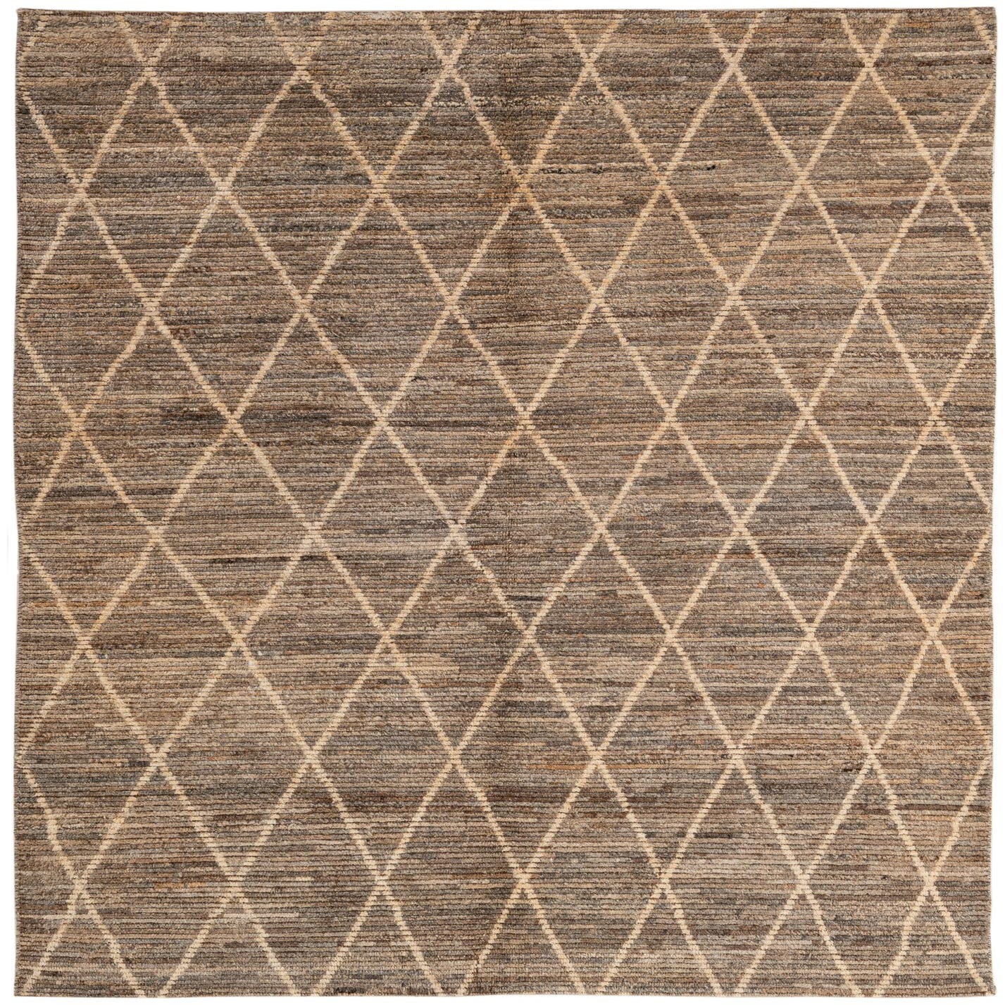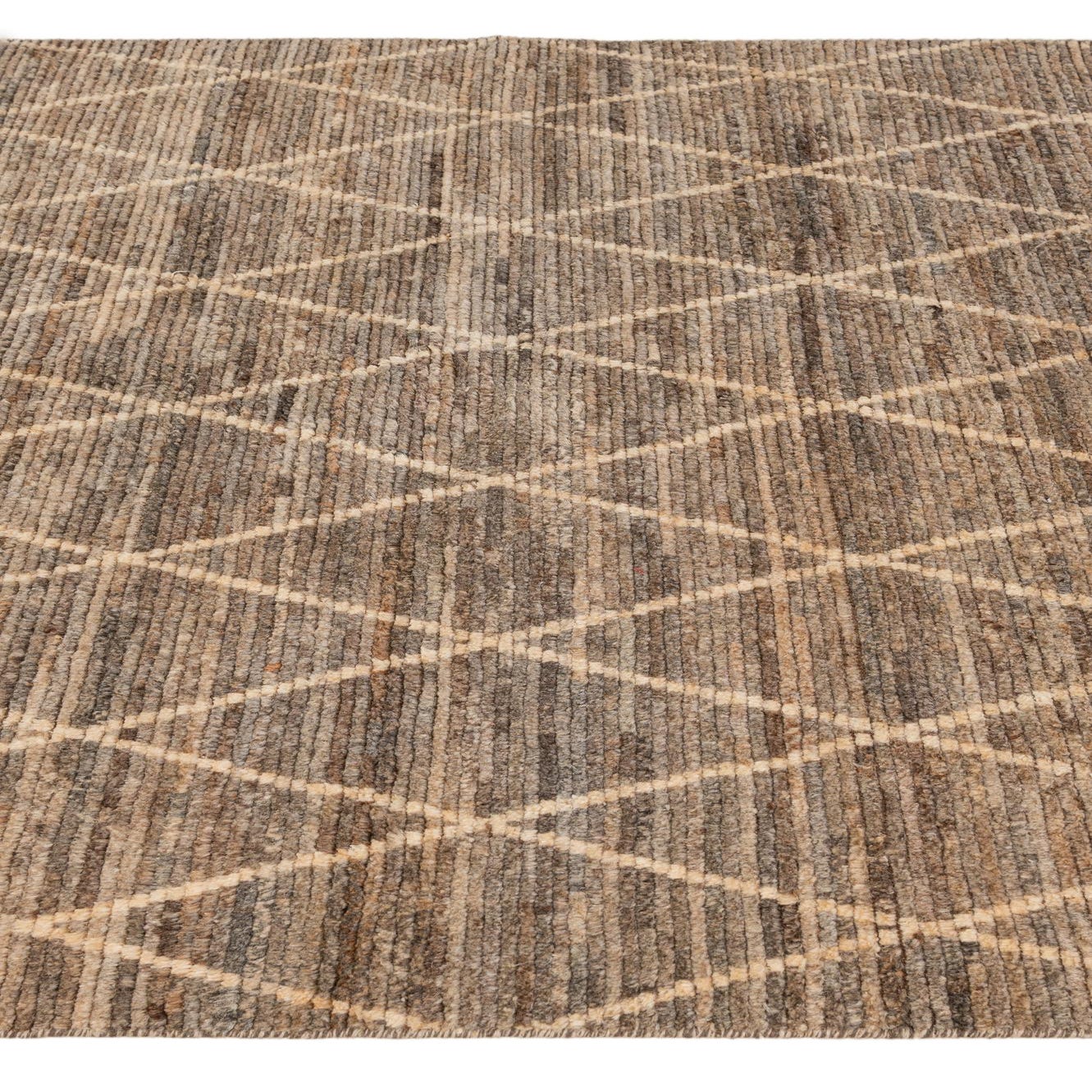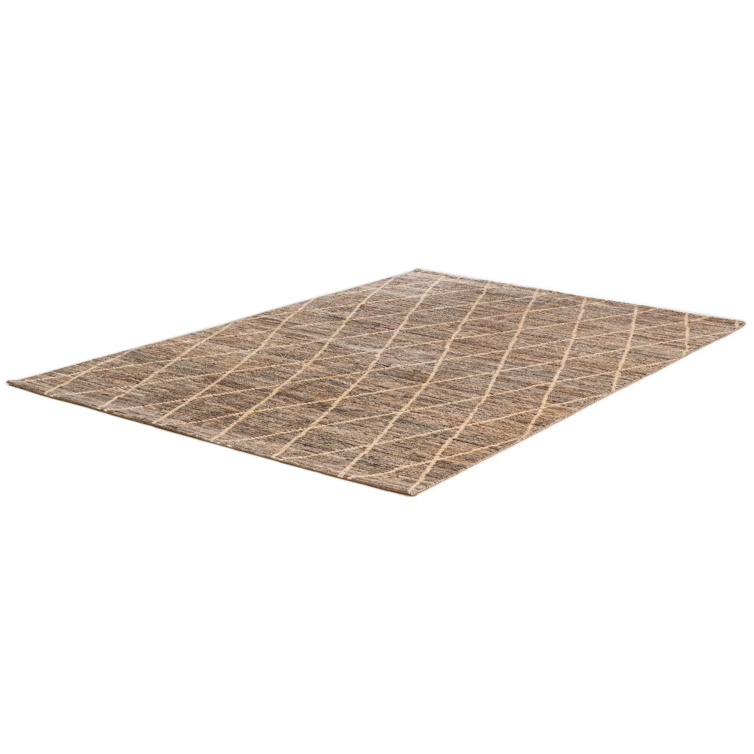 A 5x8 rectangular brown wool area rug featuring a repeating light tan diamond pattern, suitable for a living room.