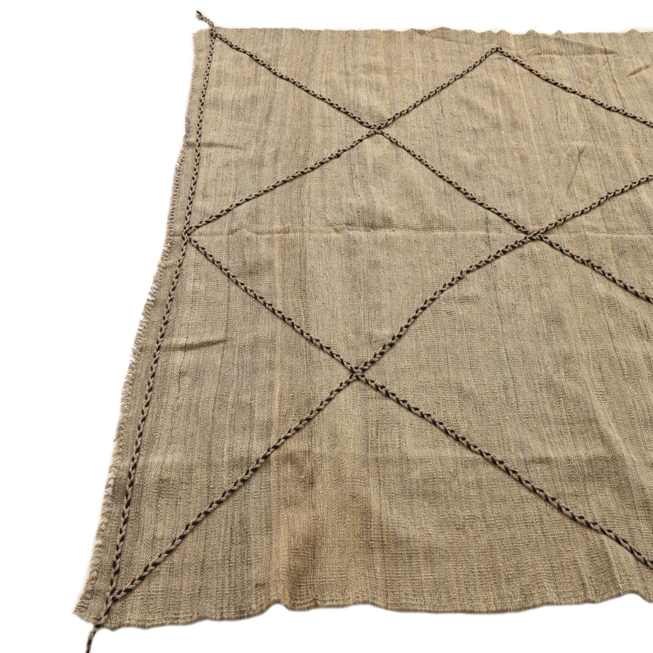 This rug's neutral color palette makes it a versatile addition to a variety of interior design schemes. It is well-suited for spaces that embrace natural materials and earthy hues, such as modern farmhouse, bohemian, or Scandinavian-inspired interiors. The rug could serve as a grounding element in a minimalist setting or add an organic touch to a more eclectic living space. Whether placed in a living room, dining area, or bedroom, this rug will enhance the room with its understated elegance and time-honored craftsmanship.