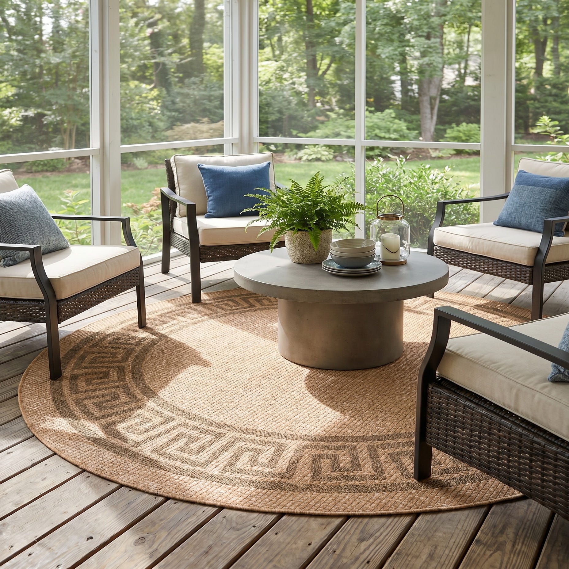 6' x 6' Easy-Clean Border Indoor / Outdoor Round Rug
