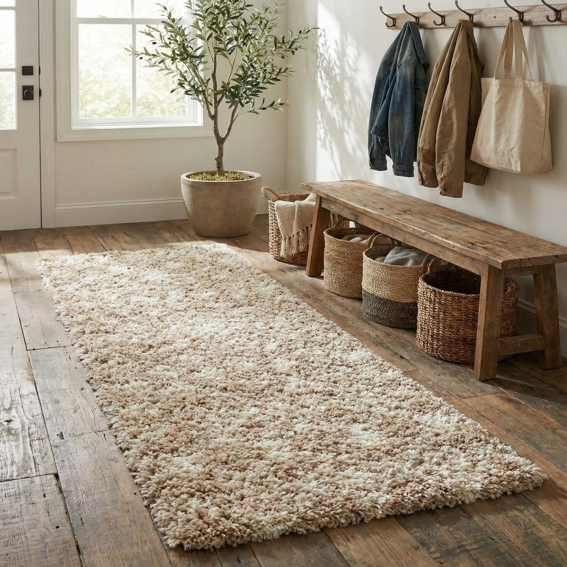 This runner brings tactile warmth to hallways, foyers, and alongside beds, where its plush surface invites bare feet and softens hard floors. It pairs naturally with Scandinavian and coastal schemes, relaxed farmhouse or transitional interiors, and layered boho looks—work it under a narrow console table, along a corridor to connect rooms, or beside a bed to introduce a cozy, inviting element.