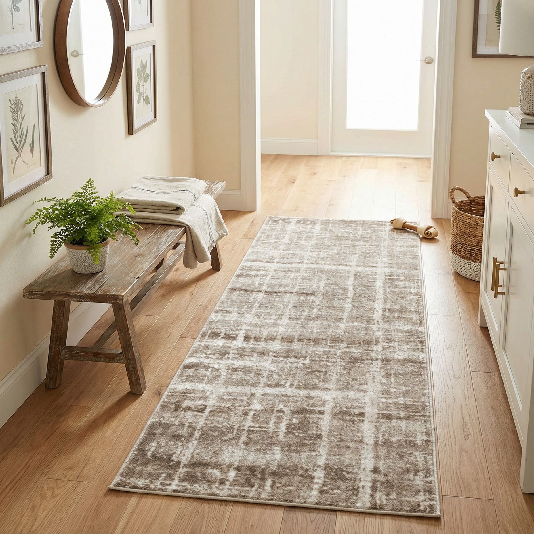 Warm neutrals make this piece easy to style: place it in a hallway or entry to anchor light wood floors, or run it alongside a kitchen island for a cohesive, understated look. It pairs naturally with linen upholstery, woven textures, and matte metal accents in modern, transitional, or Scandinavian interiors, and can also layer nicely over a larger rug to add depth without overpowering a room.