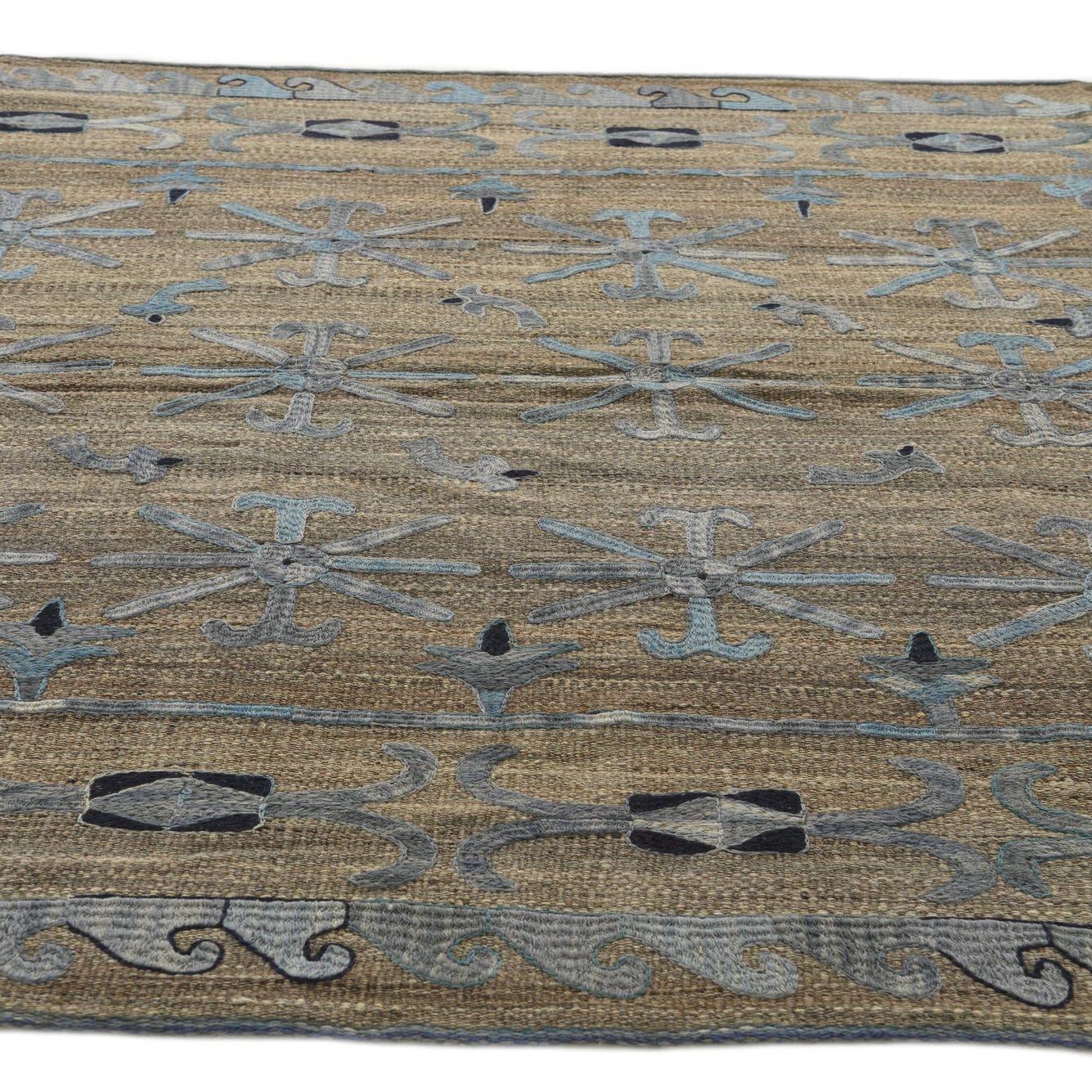 5' 9 x 6' 2 Hand Woven Kilim Suzani Wool Square Rug