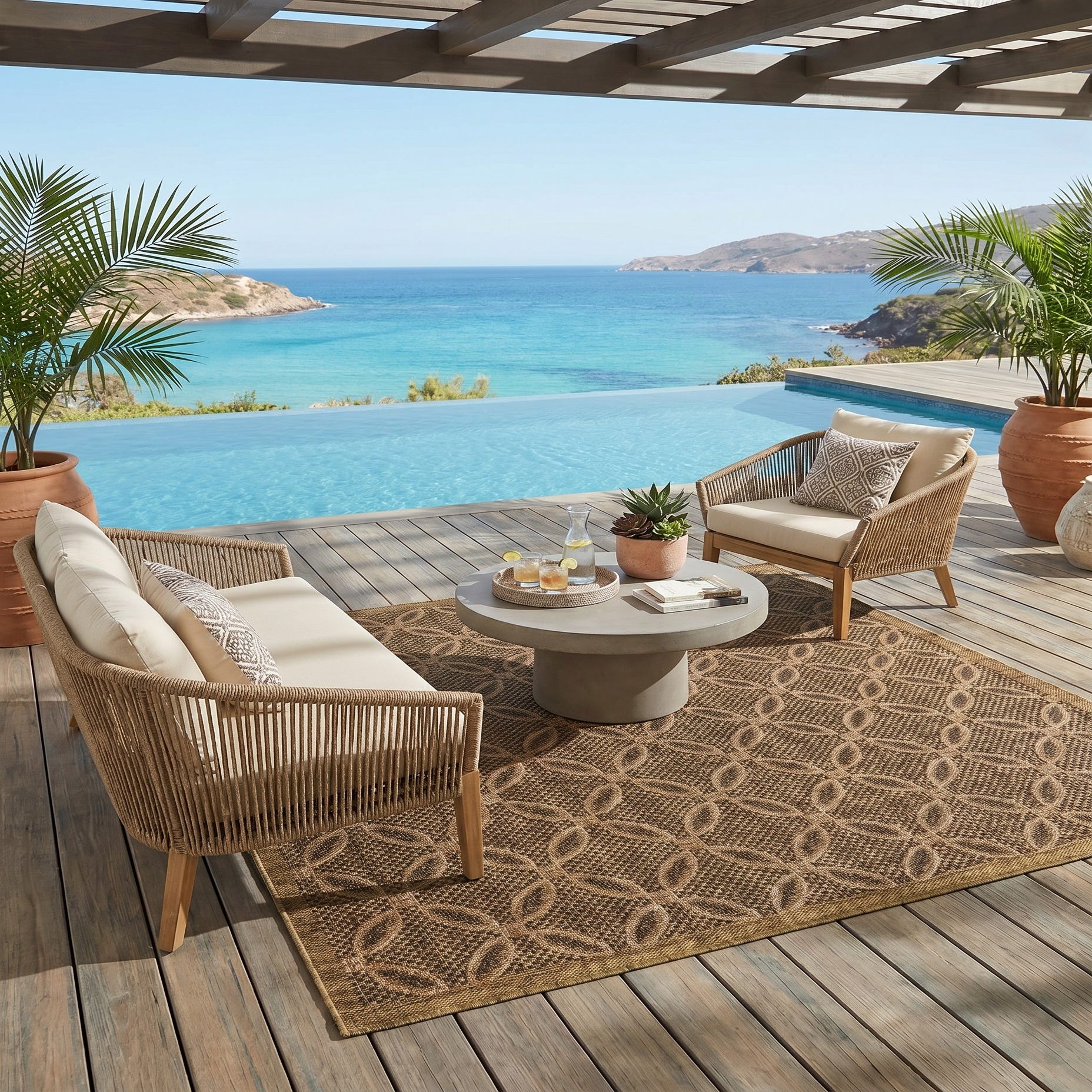 6' x 6' Easy-Clean Lattice Indoor / Outdoor Square Rug