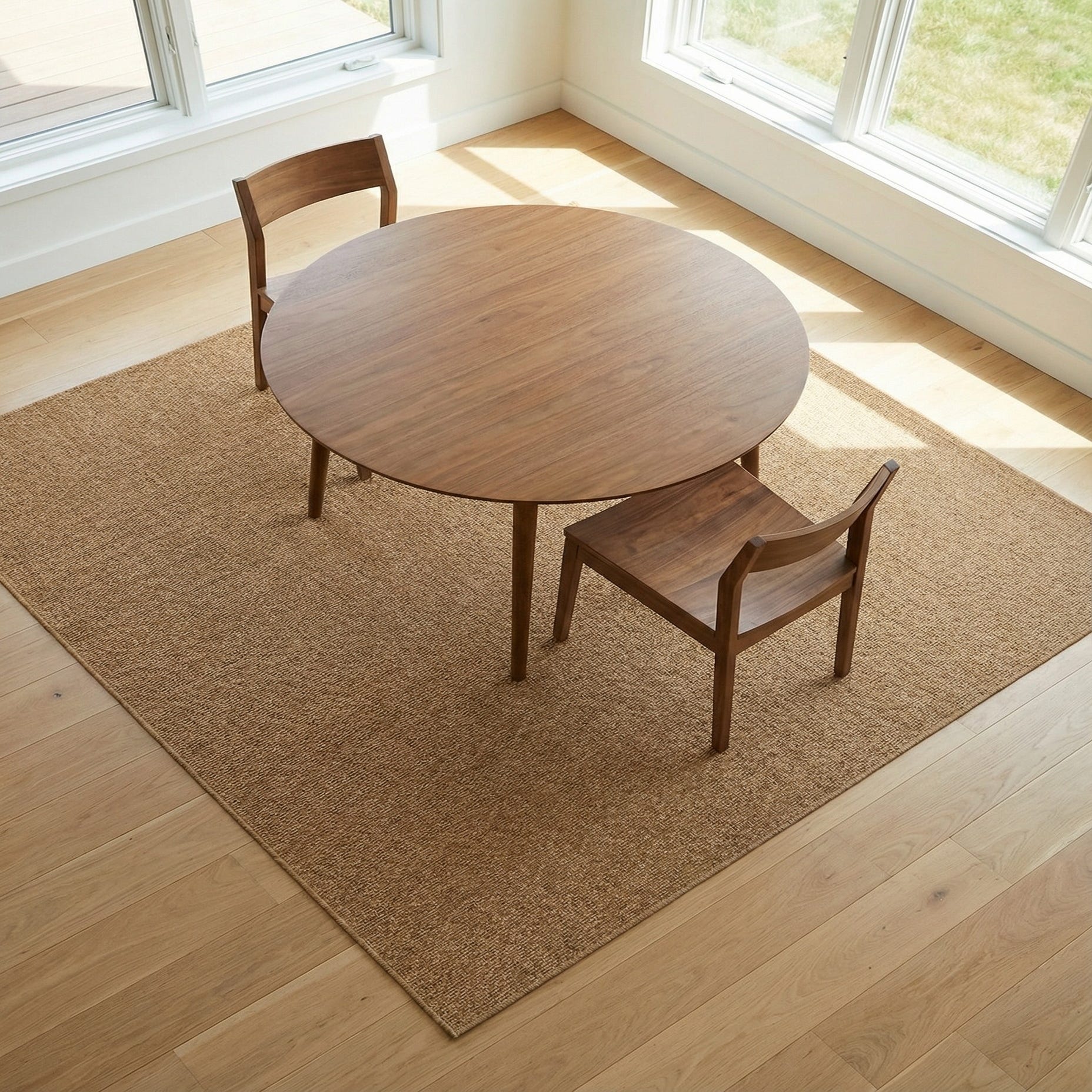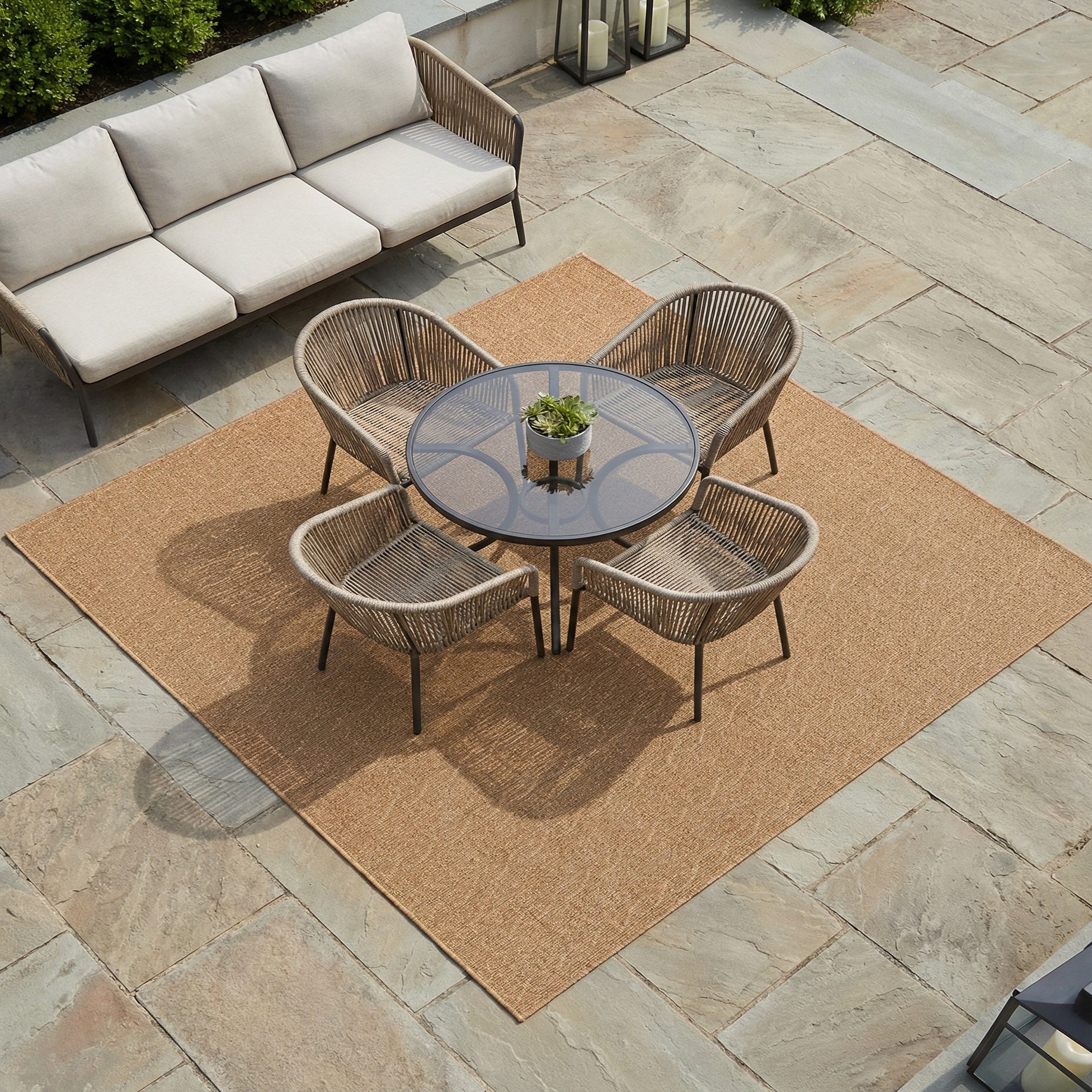 This versatile piece complements both modern and transitional settings — pair it with warm wood dining furniture for a relaxed outdoor dining spot, layer it under a simple bistro set on a balcony, or place it in a sheltered porch or sunroom alongside rattan and linen accents. It also works well with navy or charcoal cushions for contrast, or with other neutrals and natural textures to build a calm, cohesive palette.
