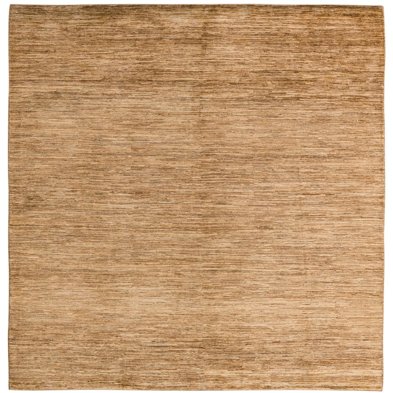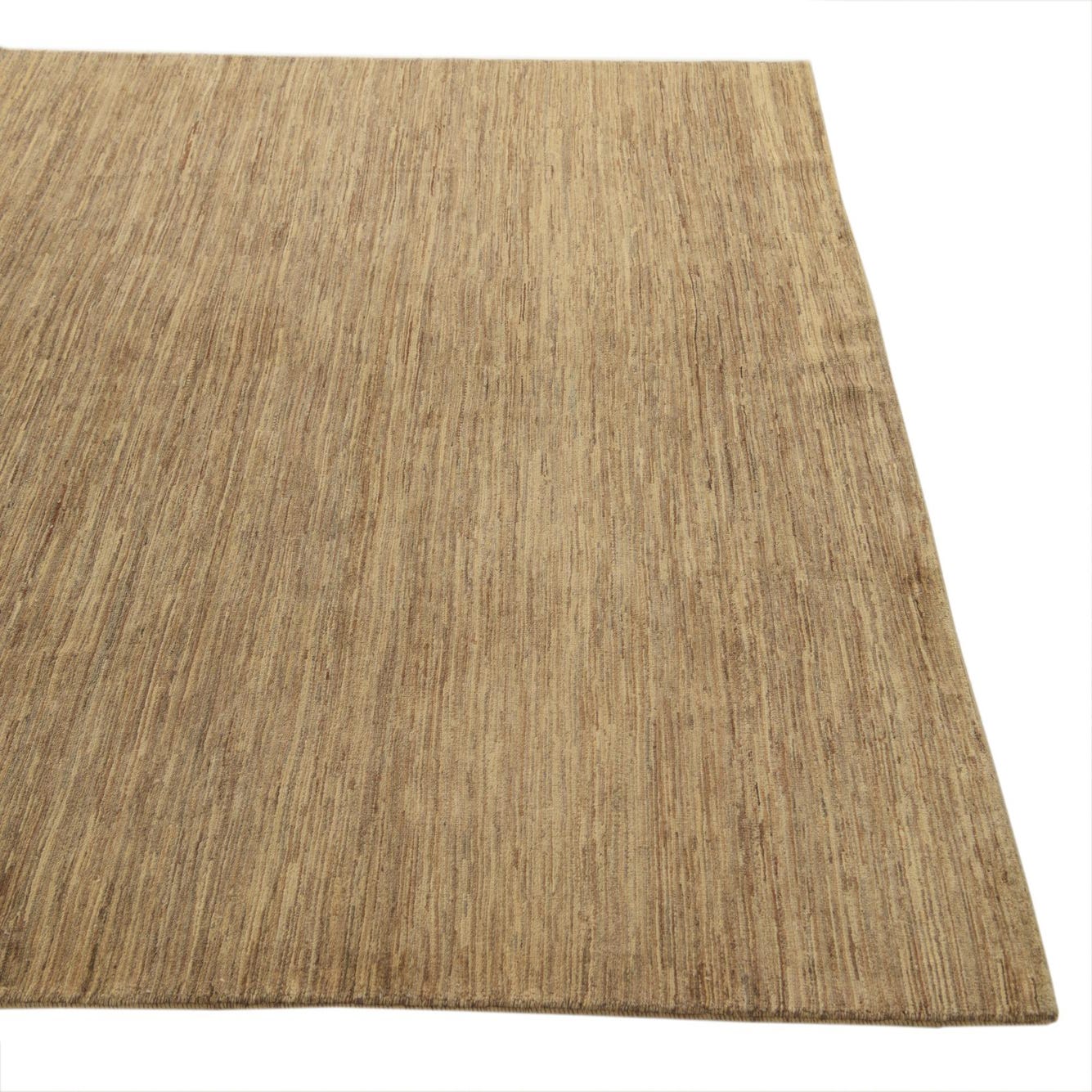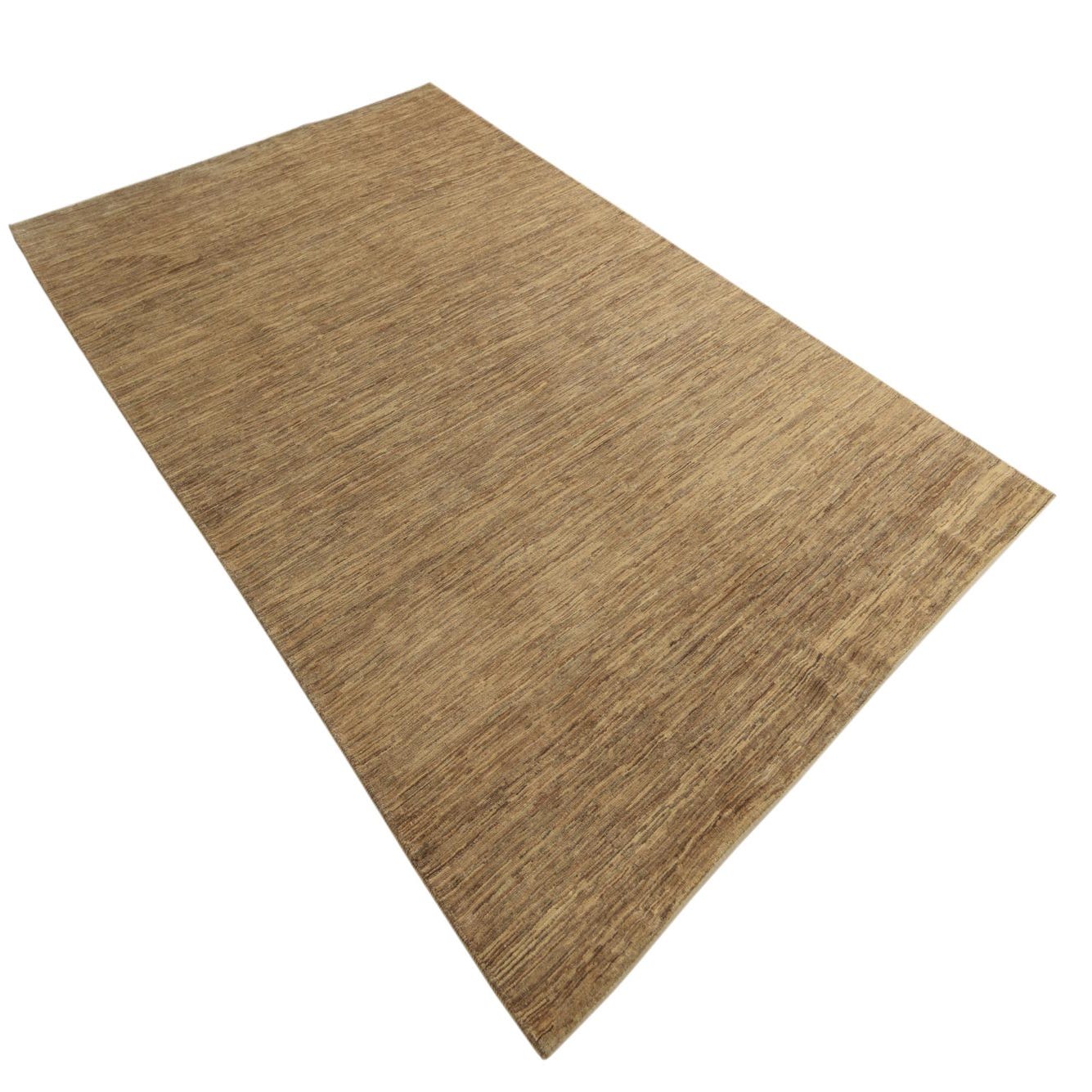 A 6x9 rectangular Kashkuli Gabbeh rug in varying shades of brown and tan, featuring a modern stripe pattern, ideal for a living room or office.