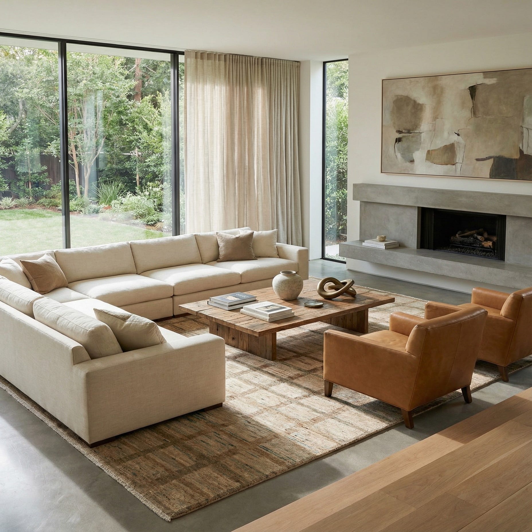 A 6x9 rectangular Modern Ziegler wool rug in shades of brown and tan with a subtle grid pattern.