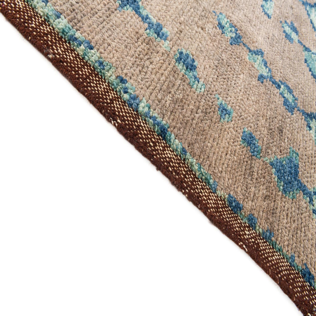 Primary color is Light Brown. Colors in this rug include: Light Brown, Blue, Green, Brown.