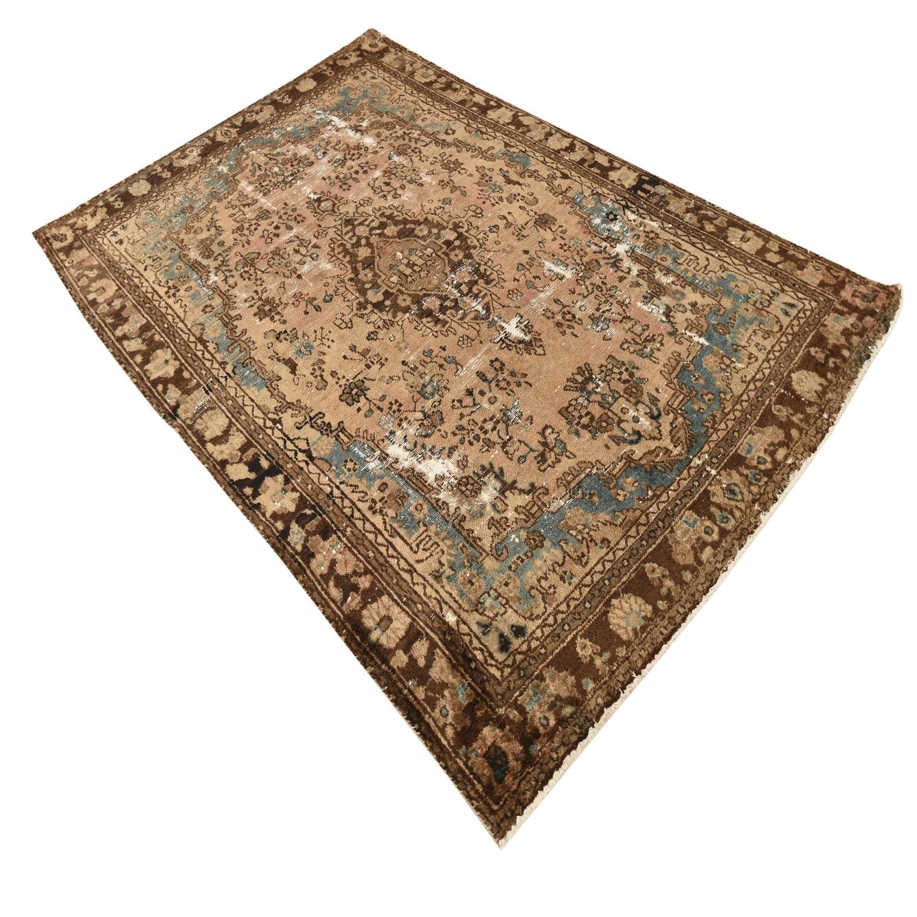 This Persian Ultra Vintage rug is an antique Persian Rug that has been washed, over-dyed, and then shaved down to a low pile. Look at the detail pictures to fully appreciate the uniqueness of this piece.