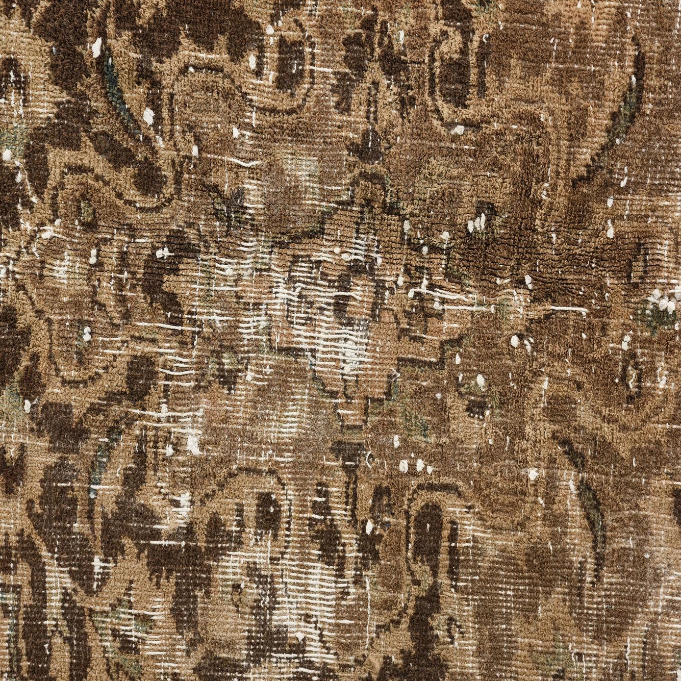 A 6x9 rectangular brown and tan Persian-style wool rug with a faded medallion pattern, suitable for a living room.