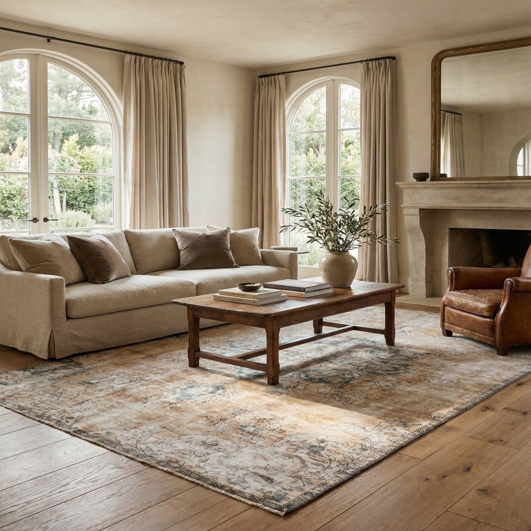A 6x9 rectangular Ultra Vintage rug featuring a faded Persian medallion pattern in brown and tan tones.