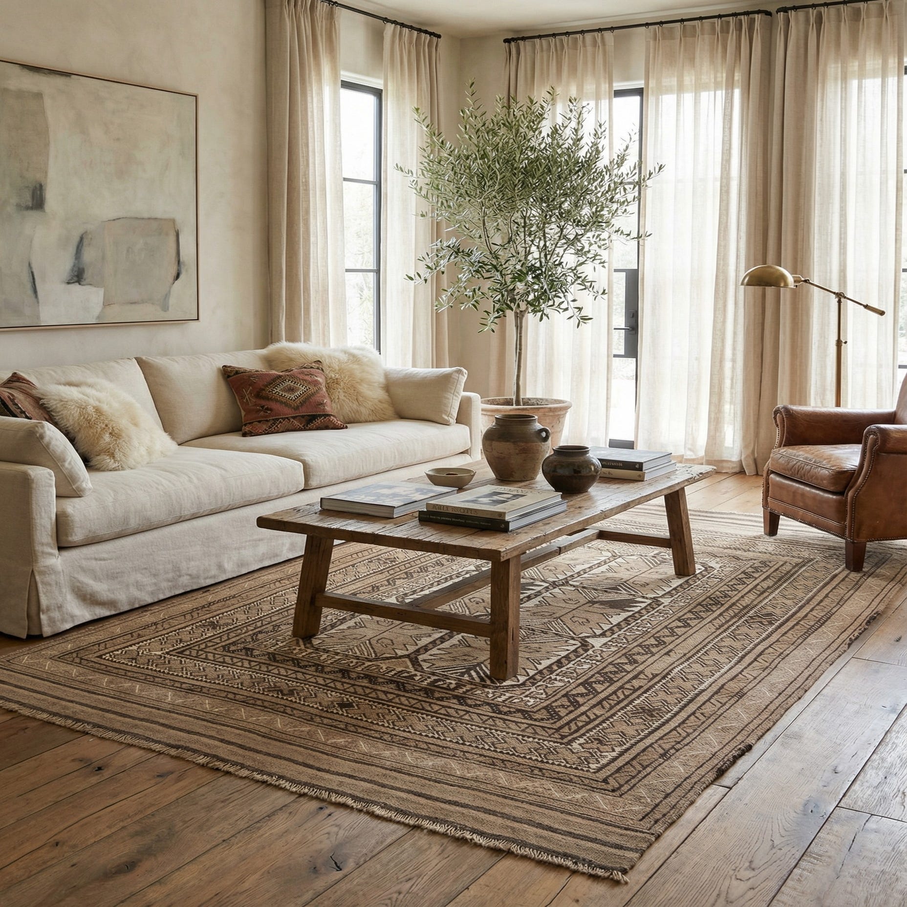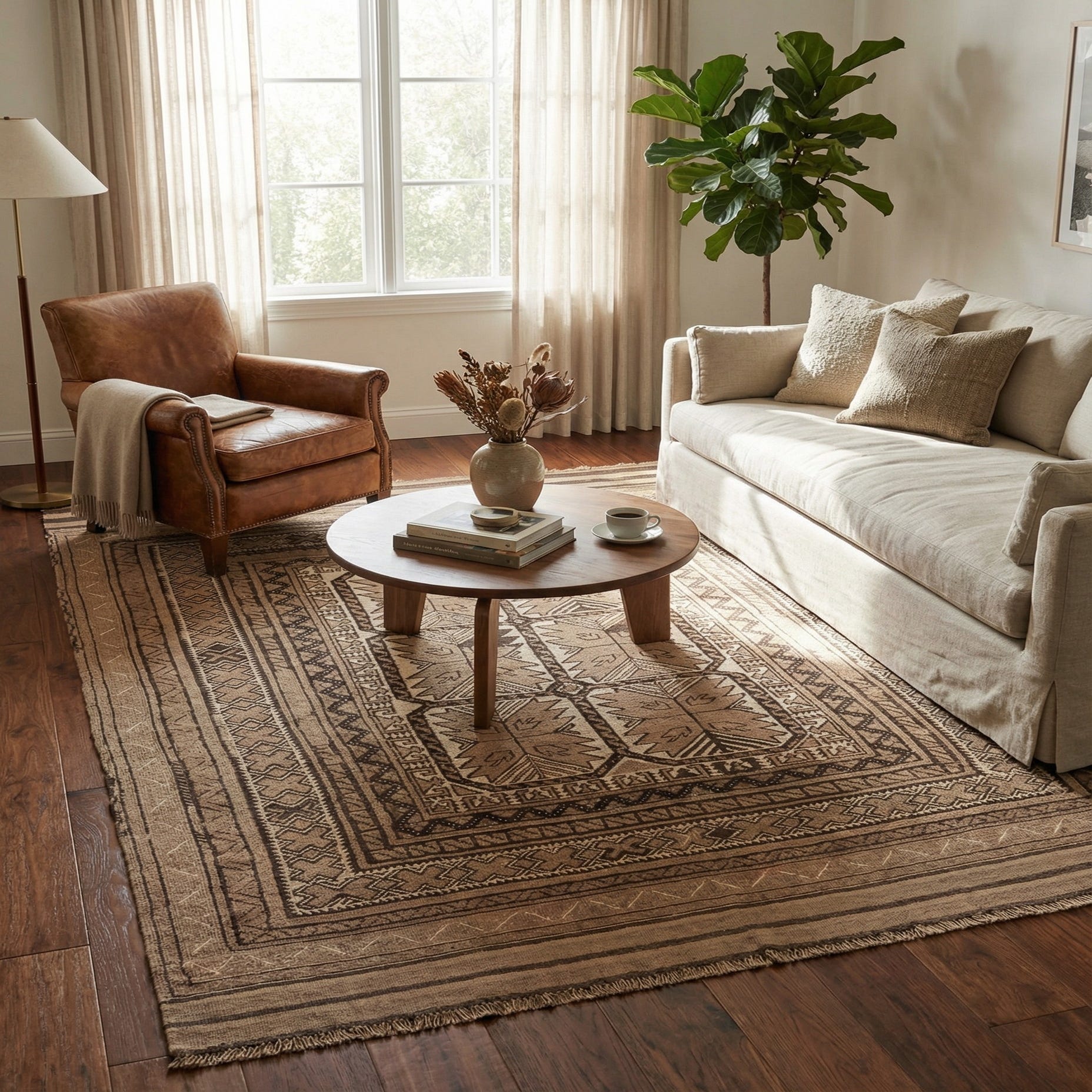 An ideal anchor for a living room, dining area, or private study, this rug pairs harmoniously with natural wood furnishings, leather accents, and an array of textures to create a layered and sophisticated interior. The subdued hues allow for flexibility in color coordination, ensuring the rug can serve as both a focal point or as a complementary backdrop to a room’s design scheme.