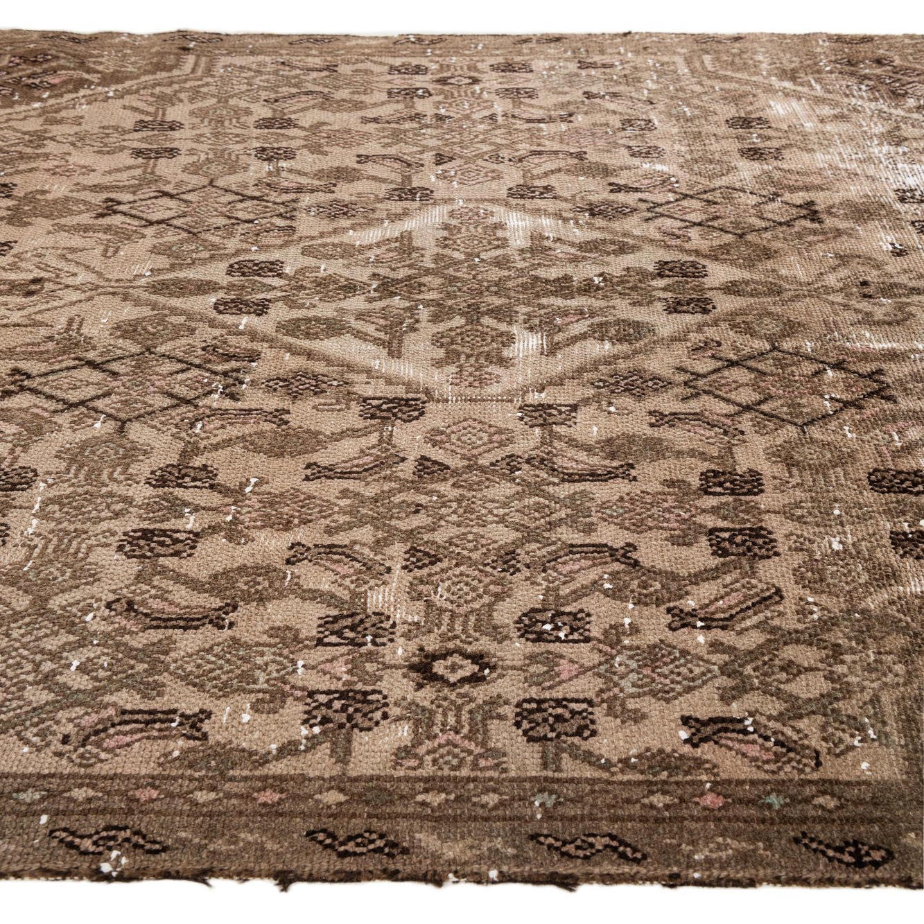A 6x9 rectangular Ultra Vintage wool rug in shades of brown and tan, featuring a distressed Persian medallion pattern.