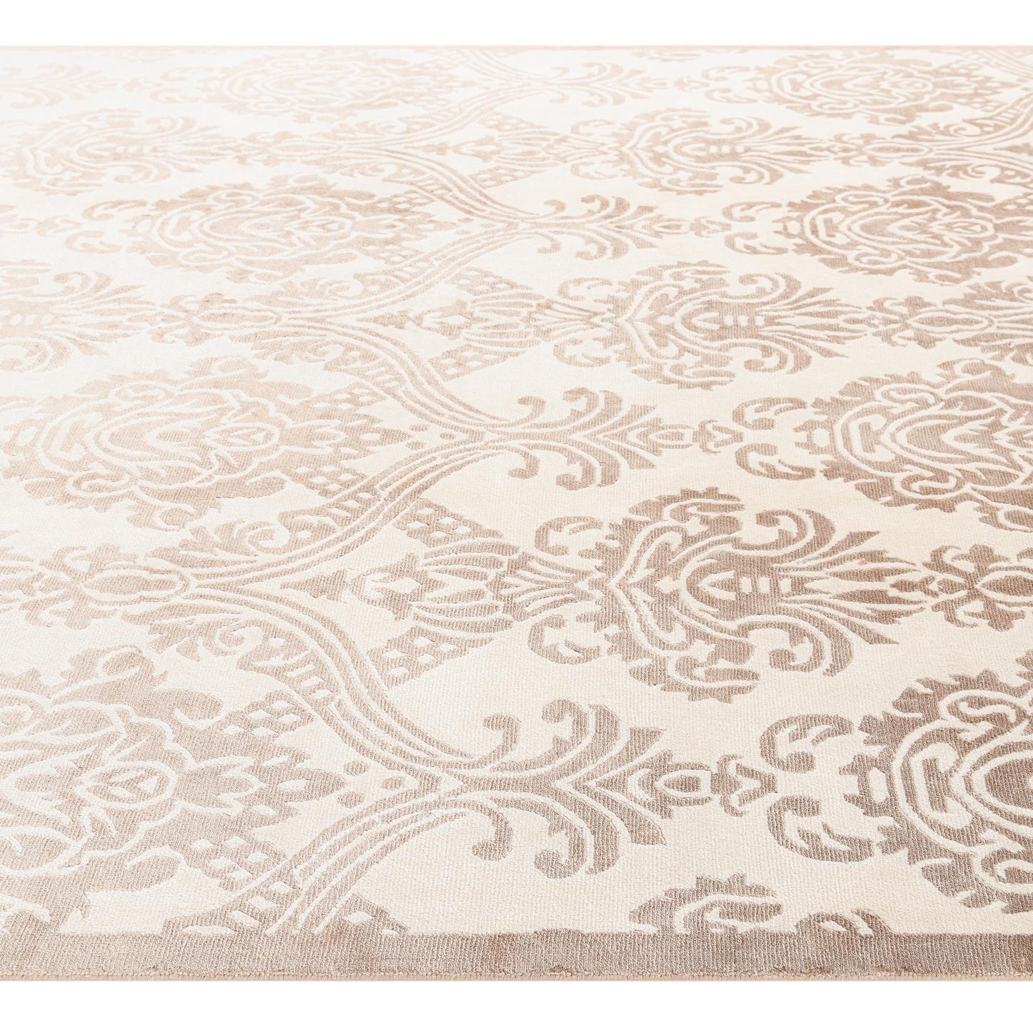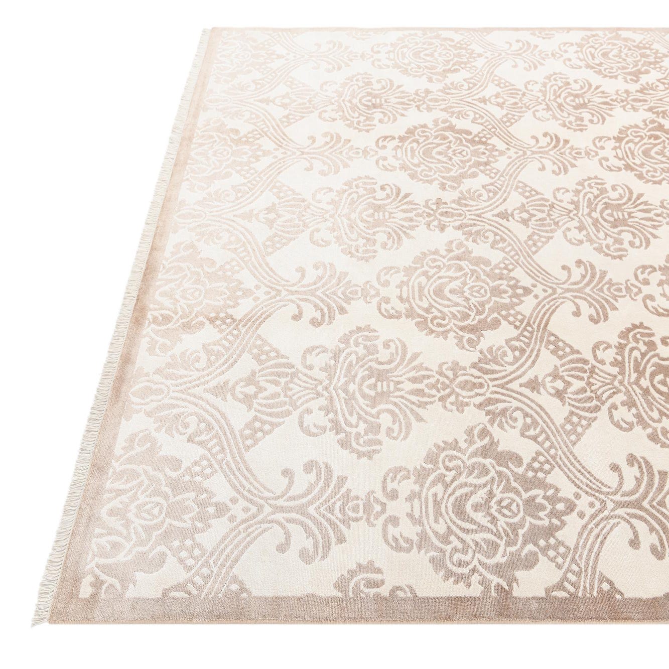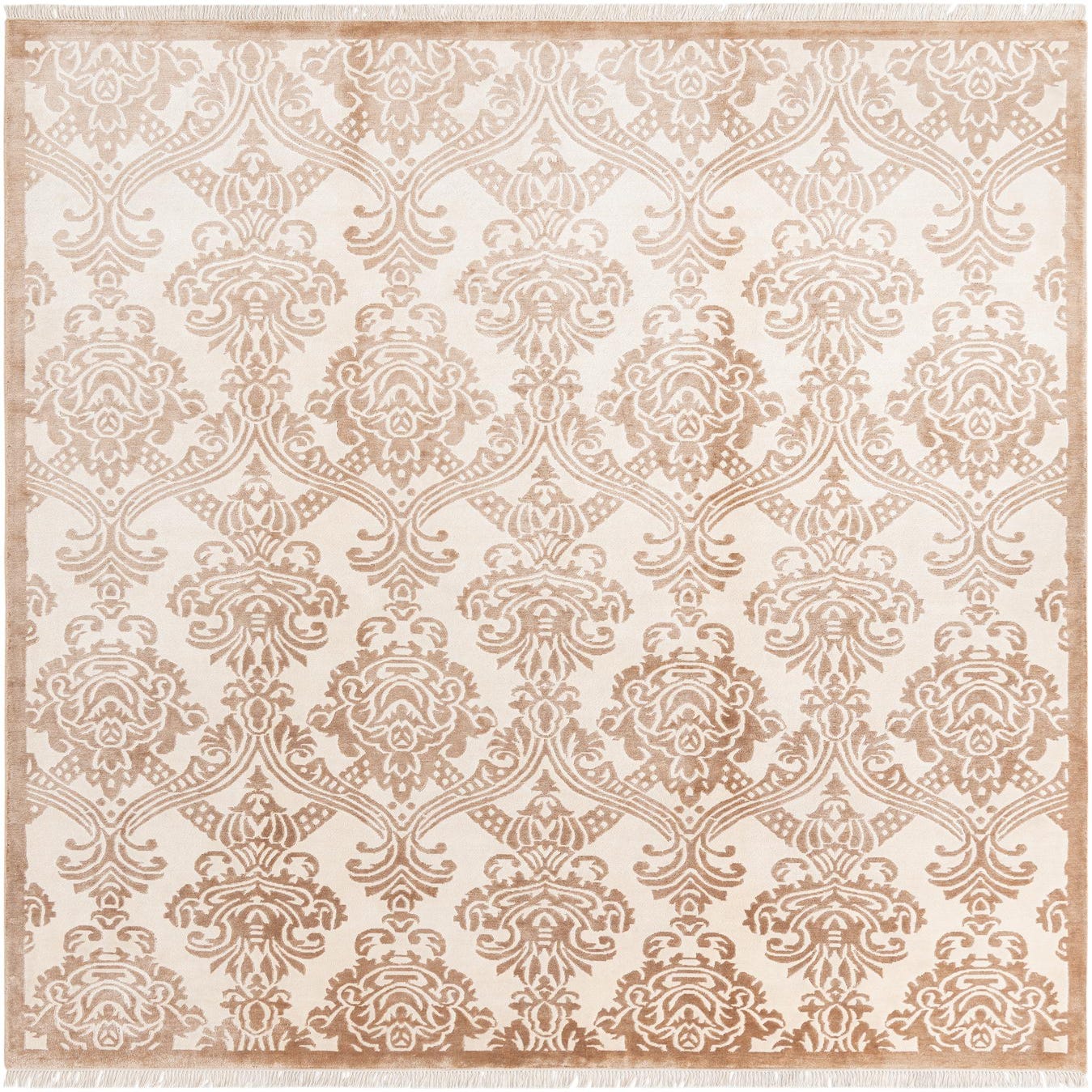 A 7x10 rectangular Darya rug with a modern damask pattern in shades of brown and tan, featuring a high pile.
