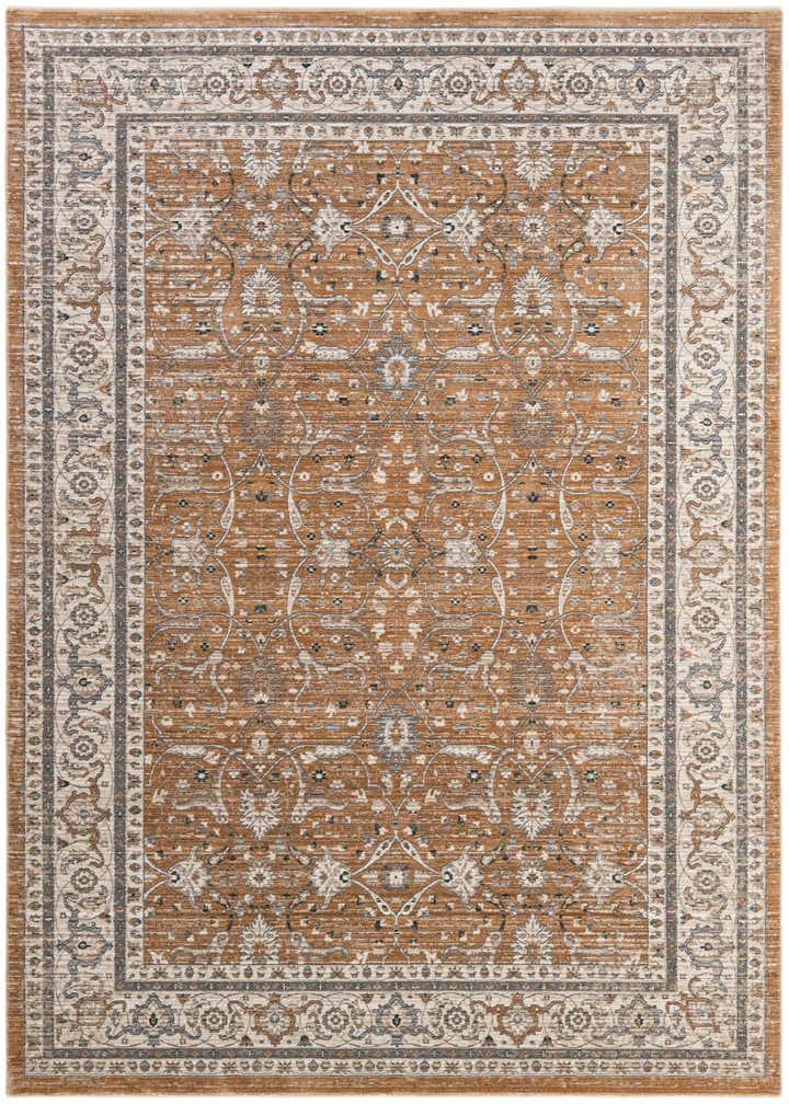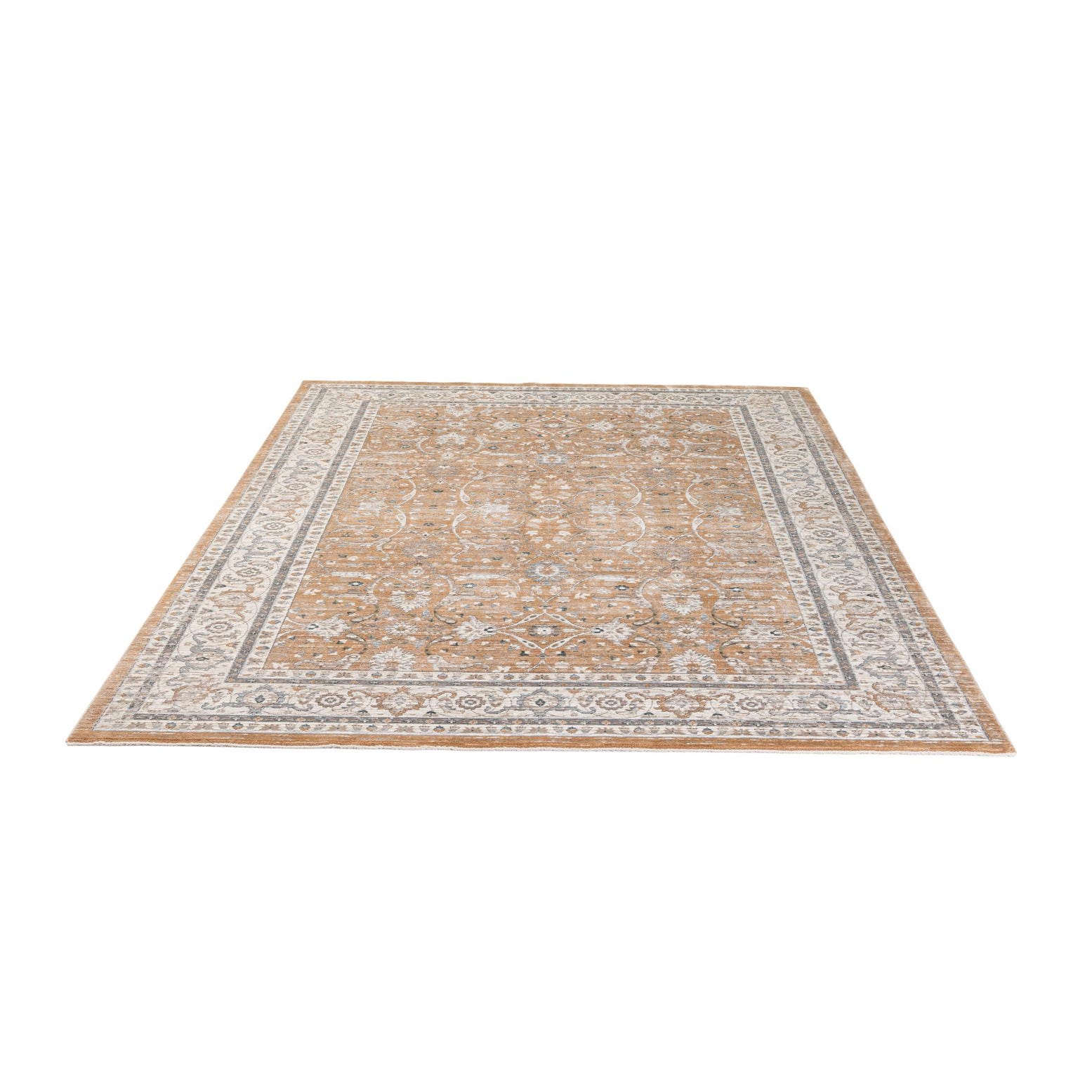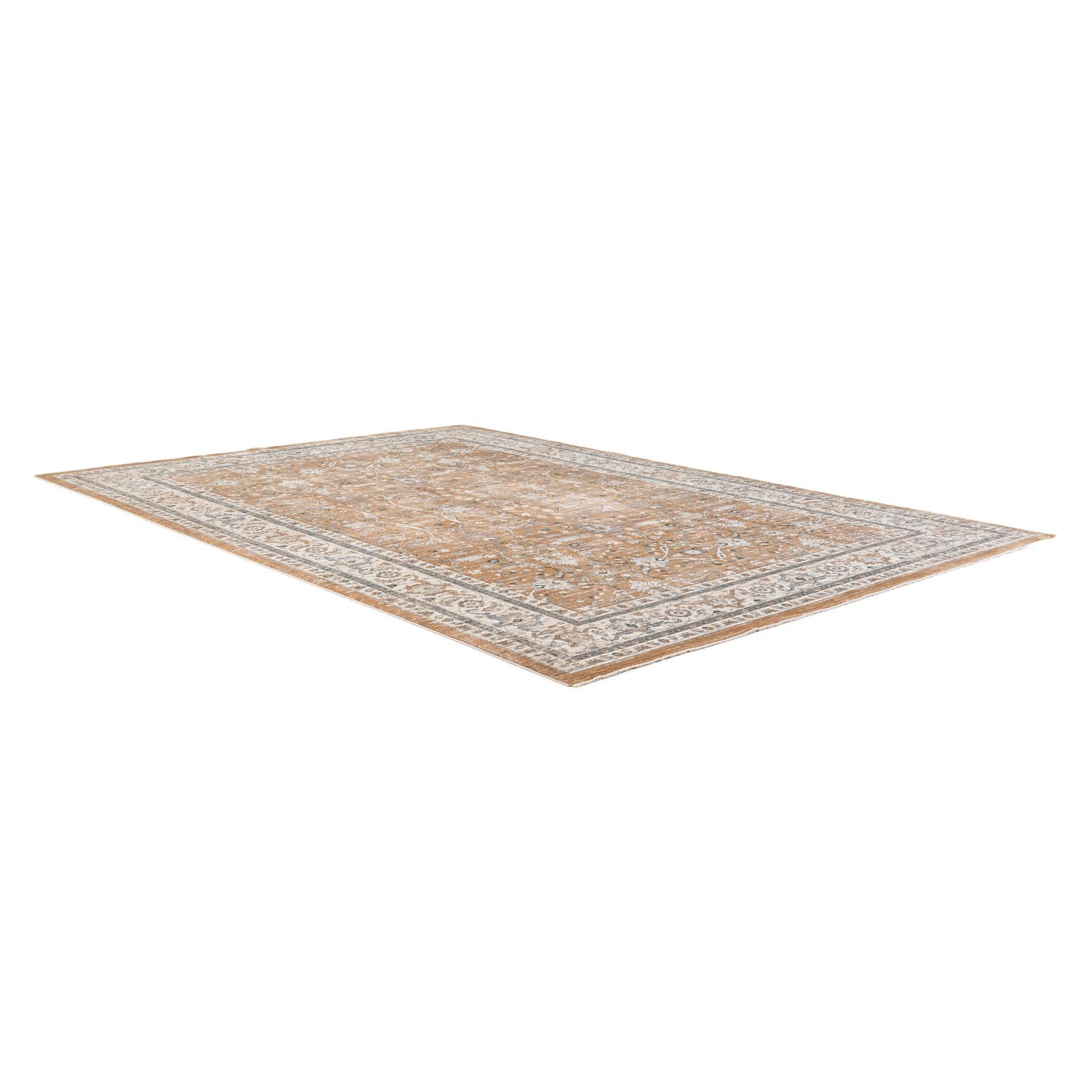Primary color is Light Brown. Colors in this rug include: Light Brown, Blue, Ivory, Gray.