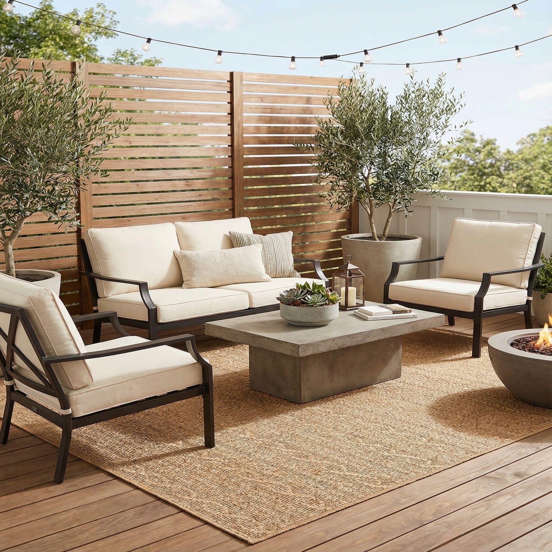 Works well on covered patios, screened porches, and sunrooms, or inside in a casual dining area or entryway where a durable, neutral foundation is needed. Pair it with warm wood furniture, rattan or wicker seating, and linen upholstery for a relaxed, coastal-leaning scheme, or use it under a simple sofa and metal-accented pieces in a contemporary living room to soften the space while keeping the overall look streamlined.