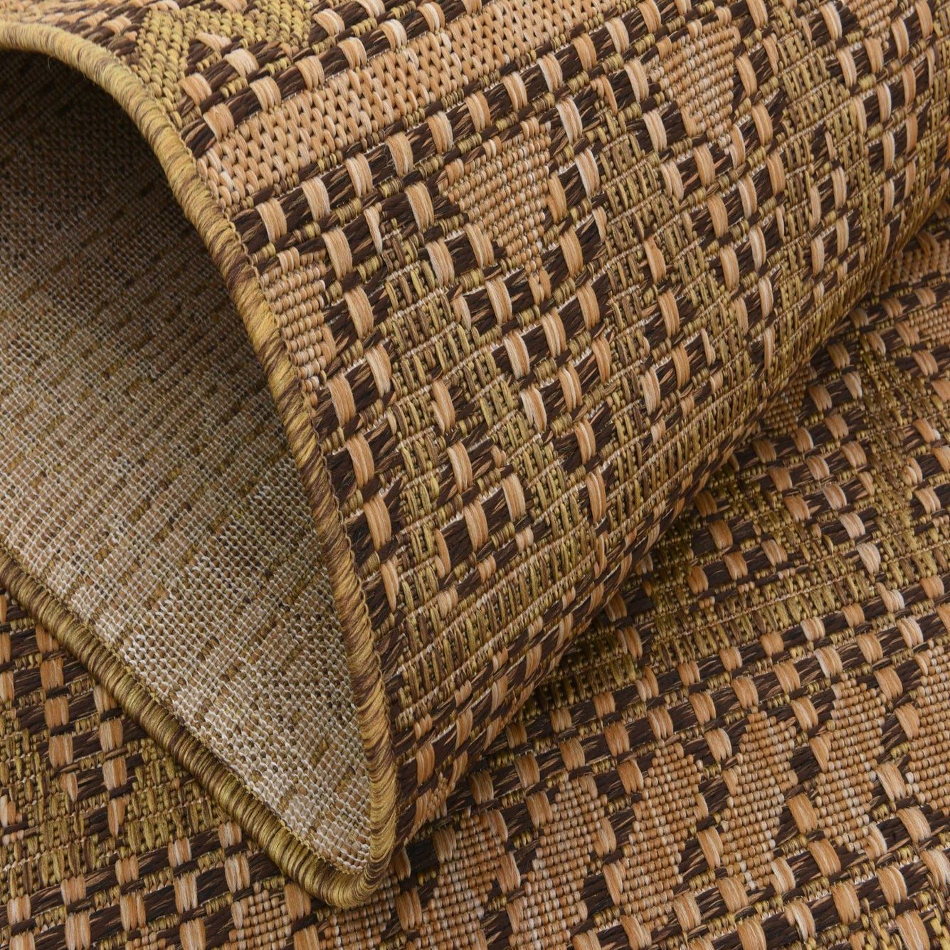 This Outdoor Modern rug is crafted with precision in a 7x10 size using machine-woven 100% polypropylene, ensuring durability and providing a flatweave construction that complements outdoor living spaces. A combination of light brown, brown, and gold hues intertwine to create an inviting base color of light brown, showcasing an engaging pattern that brings both movement and depth to the design. The stain-resistant qualities and pet-friendly nature of this rug make it an exceptionally practical choice for high-traffic areas.