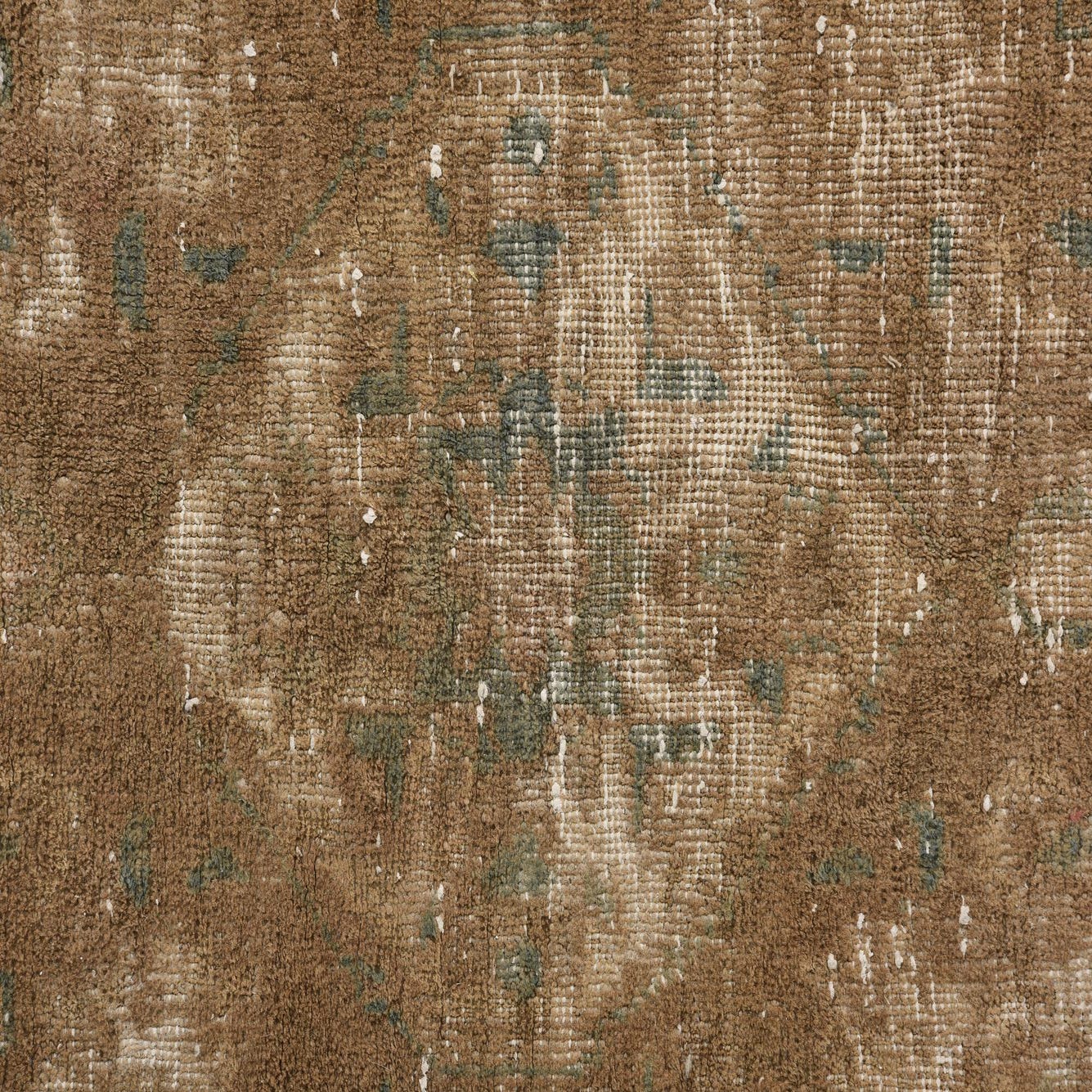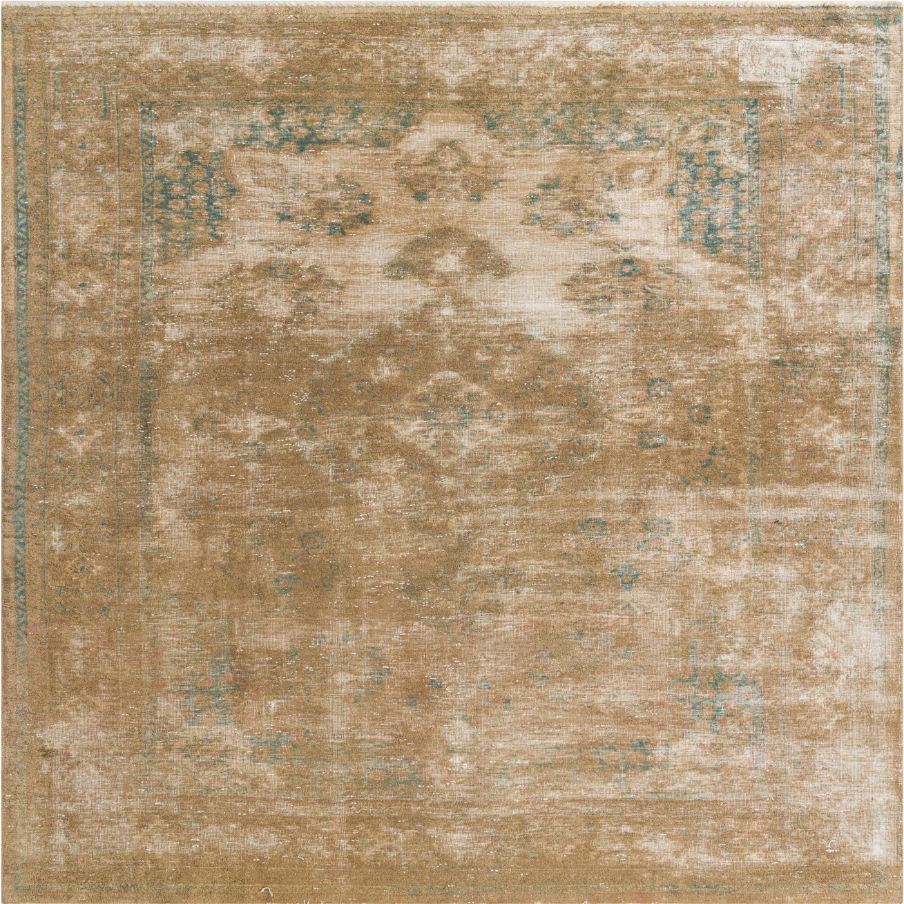 A 7x10 rectangular Ultra Vintage rug in browns and tans with a faded Persian medallion pattern in teal.