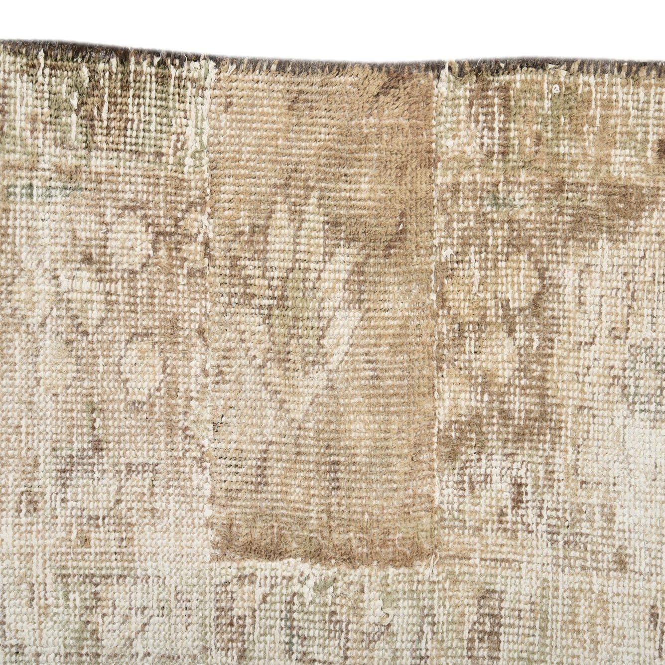 This Ultra Vintage 7x10 rug is hand-knotted of 100% wool, offering a sumptuously soft texture and enduring durability. The rug embraces a light brown background accented by a harmonious palette of beige, ivory, and deeper brown tones. Its pattern features a tasteful arrangement of floral and geometric motifs that suggest a bygone era's elegance, while the fading effect lends an air of time-softened charm.
