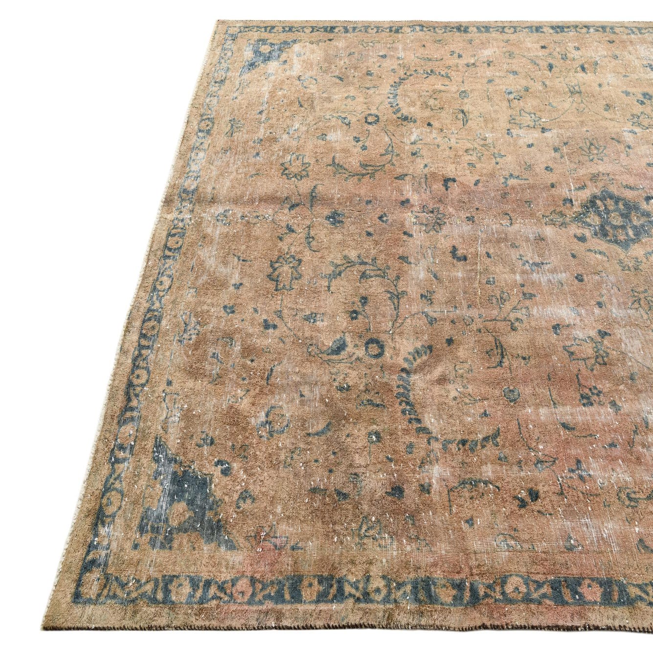 This Persian Ultra Vintage rug is an antique Persian Rug that has been washed, over-dyed, and then shaved down to a low pile. Look at the detail pictures to fully appreciate the uniqueness of this piece.