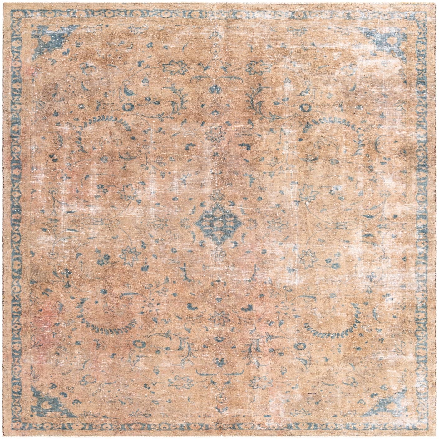 The Ultra Vintage Collection offers a 7x10 hand-knotted rug of 100% wool, imbued with a sense of timeless craftsmanship. This piece showcases a light brown background, providing a warm and soothing foundation for its intricate overlay of patterns. Accents in brown, ivory, navy blue, and red contribute to its visual palette, lending a sophisticated and versatile appeal. The rug's pattern is reminiscent of classic motifs and floral elements that evoke the elegance of bygone eras.