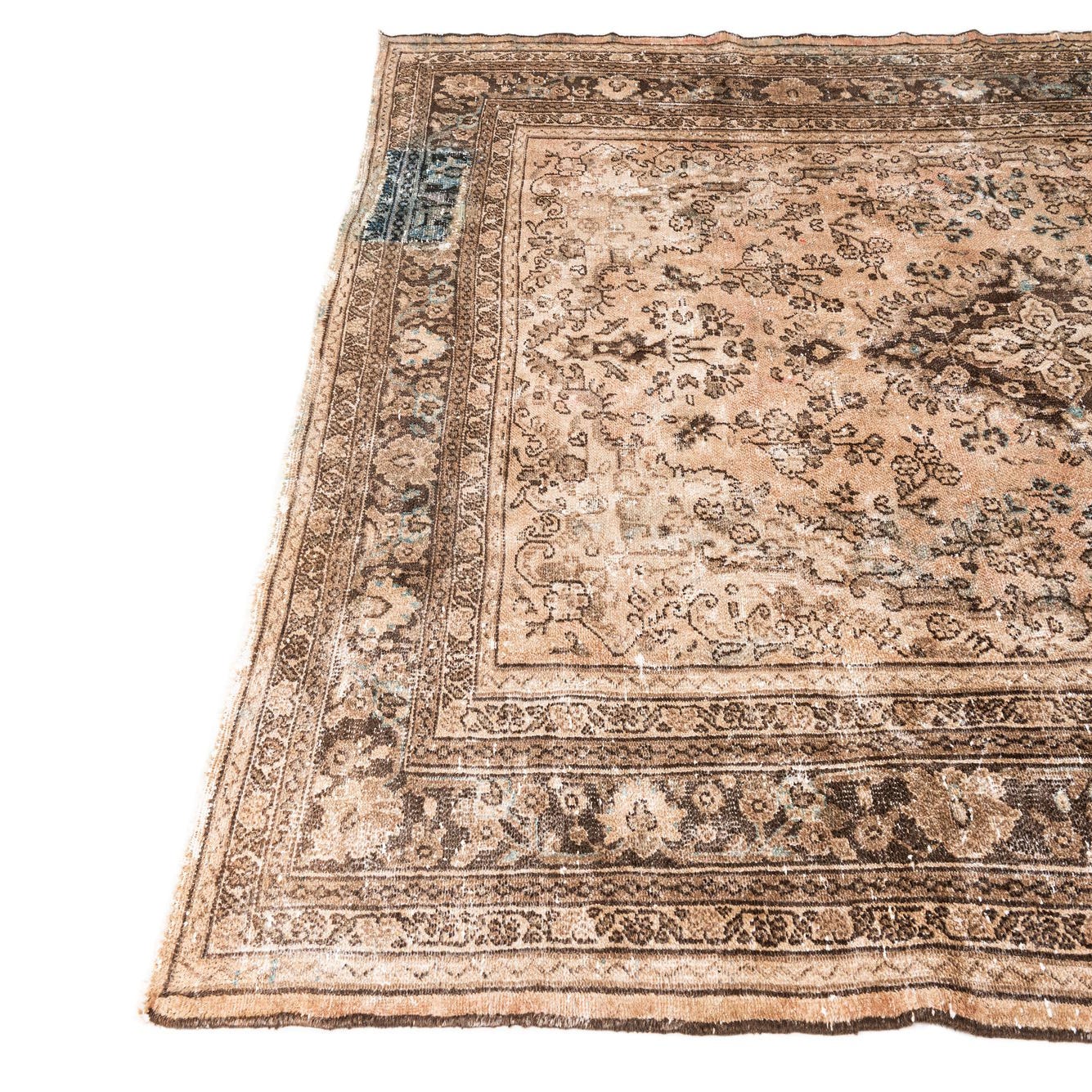 This Persian Ultra Vintage rug is an antique Persian Rug that has been washed, over-dyed, and then shaved down to a low pile. Look at the detail pictures to fully appreciate the uniqueness of this piece.