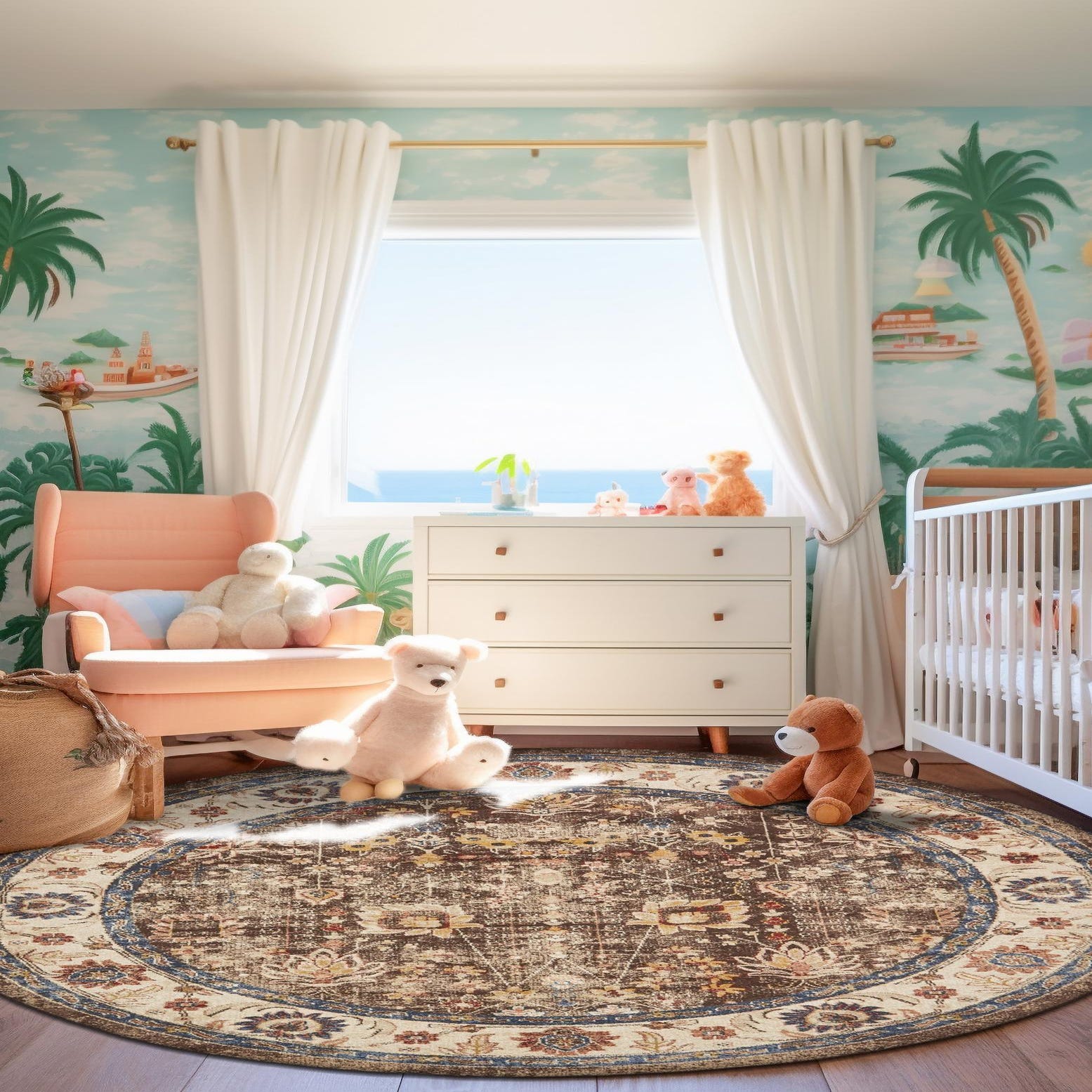 This rug is just the right combination of blues (to match our decor) and yellows/tans (to hide dirty puppy paw prints and baby spit-up lol). It’s thick enough to be comfortable for our baby to crawl on but not too thick where The vacuum can’t handle it. Highly recommend!