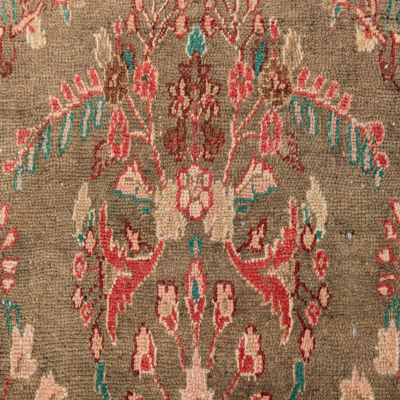 Primary color is Light Brown. Colors in this rug include: Light Brown, Green, Red, Ivory, Navy Blue.