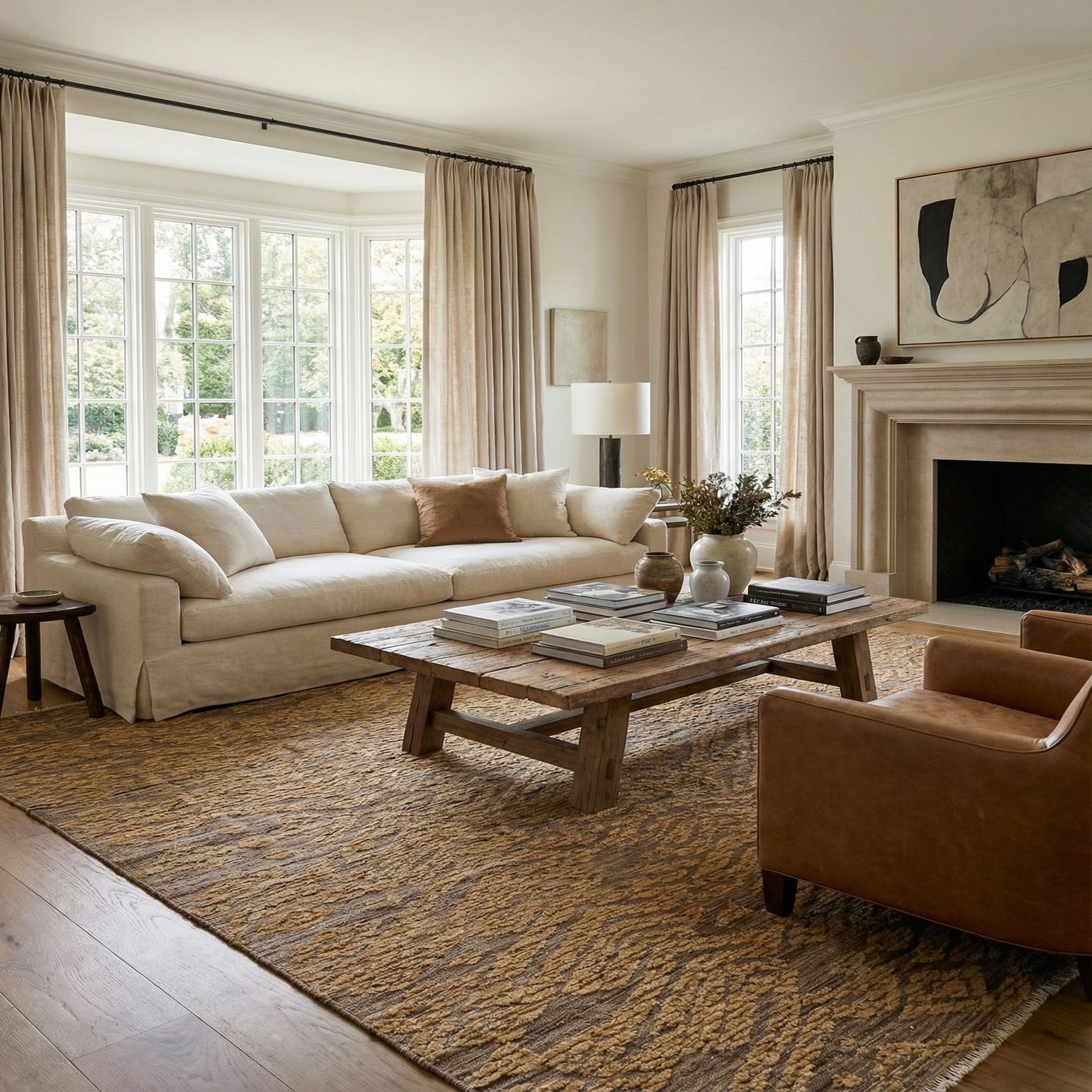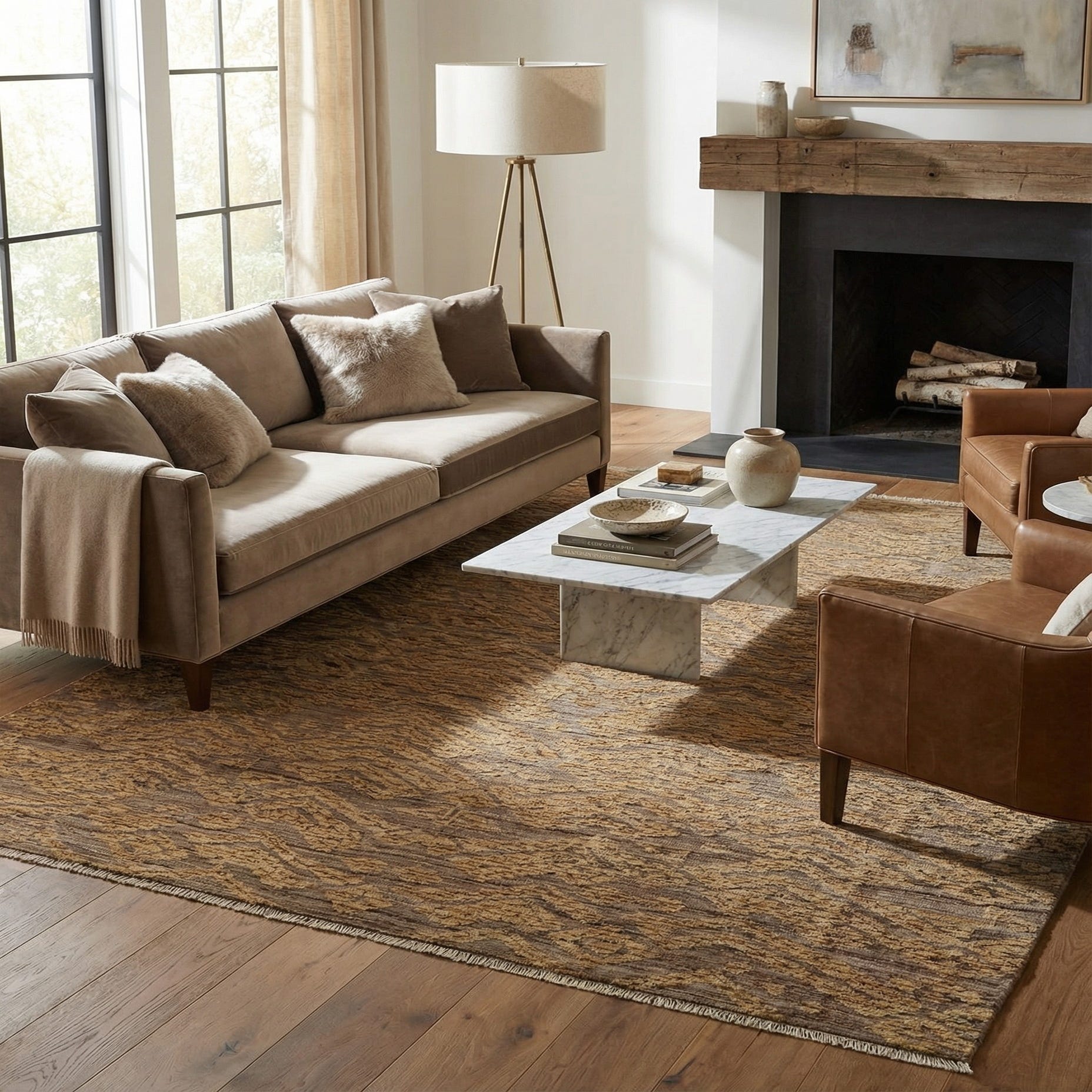 Ideally suited for a range of decor schemes, from classic to contemporary, this rug would pair well with natural wood furnishings to highlight its earthy tones. It could serve as a sophisticated backdrop in a minimalist setting or add warmth to a room with transitional decor. In a living room or an open-concept area, it could anchor the seating arrangement, providing both comfort and aesthetic balance.