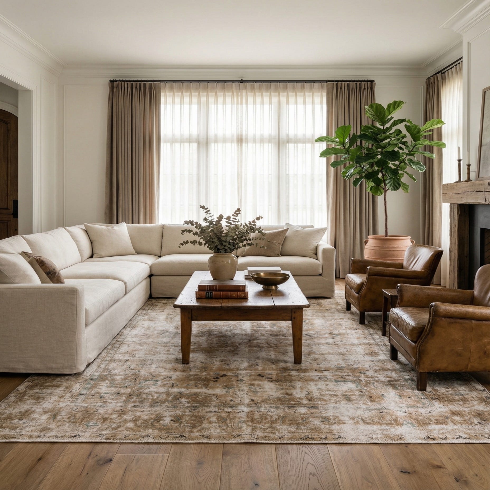 A rectangular 8x11 Rugs.com Ultra Vintage rug in browns and tans, featuring a distressed Persian medallion pattern.