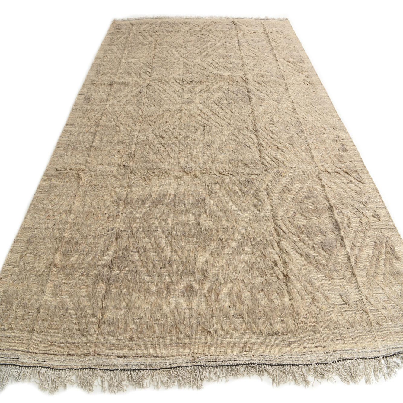 This rug anchors living and sleeping areas with quiet, natural character. Place it beneath a neutral upholstered sofa and a wood coffee table to add warmth to a contemporary or transitional living room, use it under a dining table to complement leather chairs and warm wood tones, or layer it in a bedroom to introduce texture beneath the bed. It pairs well with Scandinavian, modern farmhouse, and rustic-modern interiors where understated pattern and natural materials are desired.