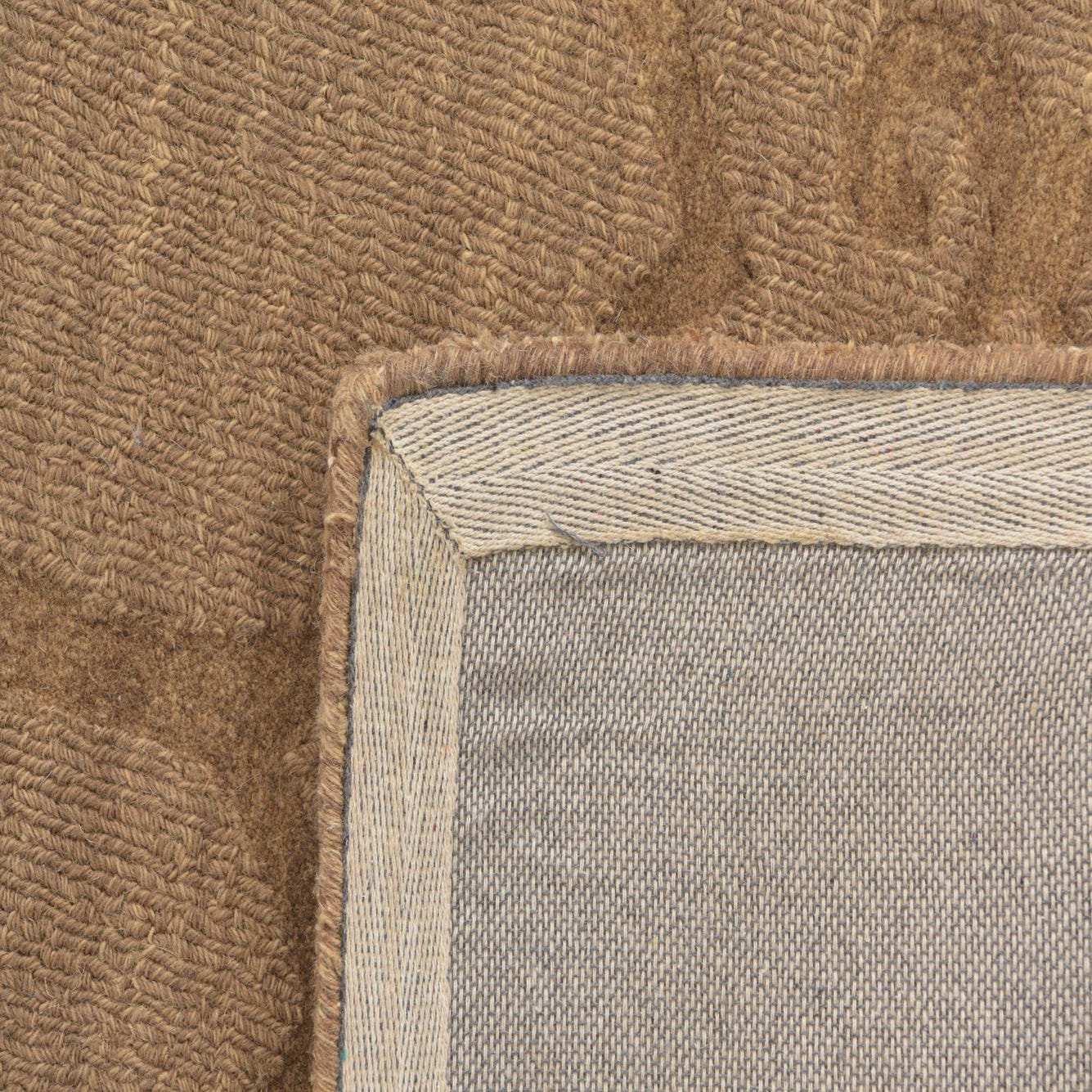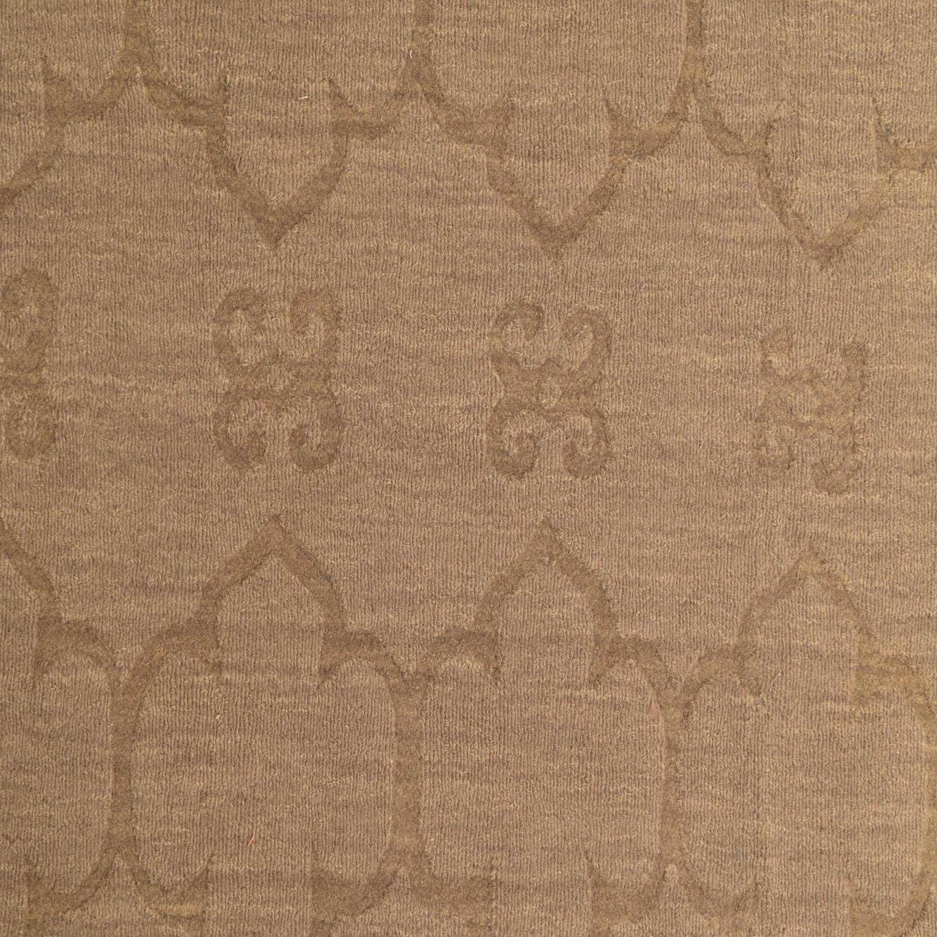 The Luna Collection presents a refined 9x12 hand-tufted rug, crafted from a blend of wool and cotton, offering a harmonious juxtaposition of softness and durability. With a background color of light brown, this rug showcases a symmetrical pattern featuring a darker brown motif that lends a sense of understated elegance. The repetitive, interlocking design brings a touch of geometric consistency, offering visual interest without overwhelming the space.