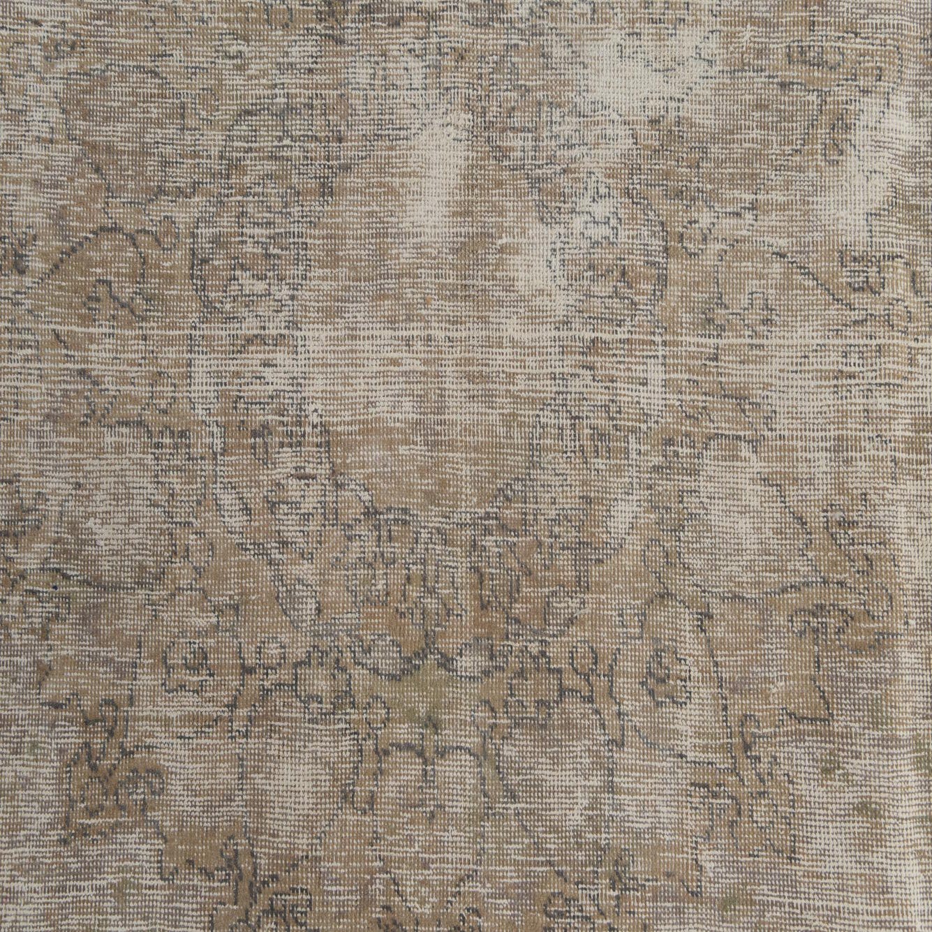 This Ultra Vintage hand-knotted rug brings a touch of classic sophistication to any living space. Crafted from 100% wool for durability and a plush feel underfoot, this 9x12 piece features a muted palette of light brown, black, brown, and ivory. The light brown background serves as a warm canvas for the faded, subtle patterning that hints at traditional design elements.