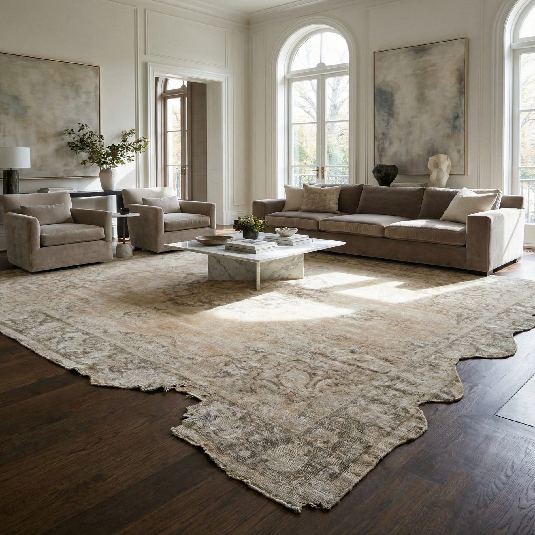 The Ultra Vintage collection presents a sophisticated 9x12 area rug hand-knotted from 100% wool, offering a luxurious and durable option for a variety of spaces. This piece features a delicate pattern with a graceful floral medallion at the center, embraced by subtle, intricate motifs throughout. The color palette is a harmonious blend of light brown and brown details on an inviting ivory background, which enhances the rug's overall warmth.