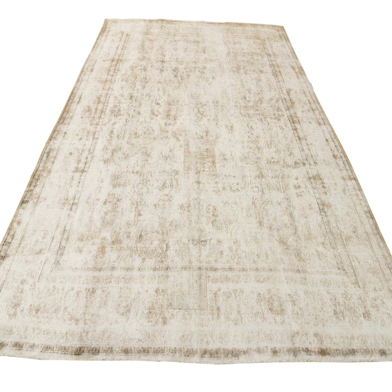 This Persian Ultra Vintage rug is an antique Persian Rug that has been washed, over-dyed, and then shaved down to a low pile. Look at the detail pictures to fully appreciate the uniqueness of this piece.
