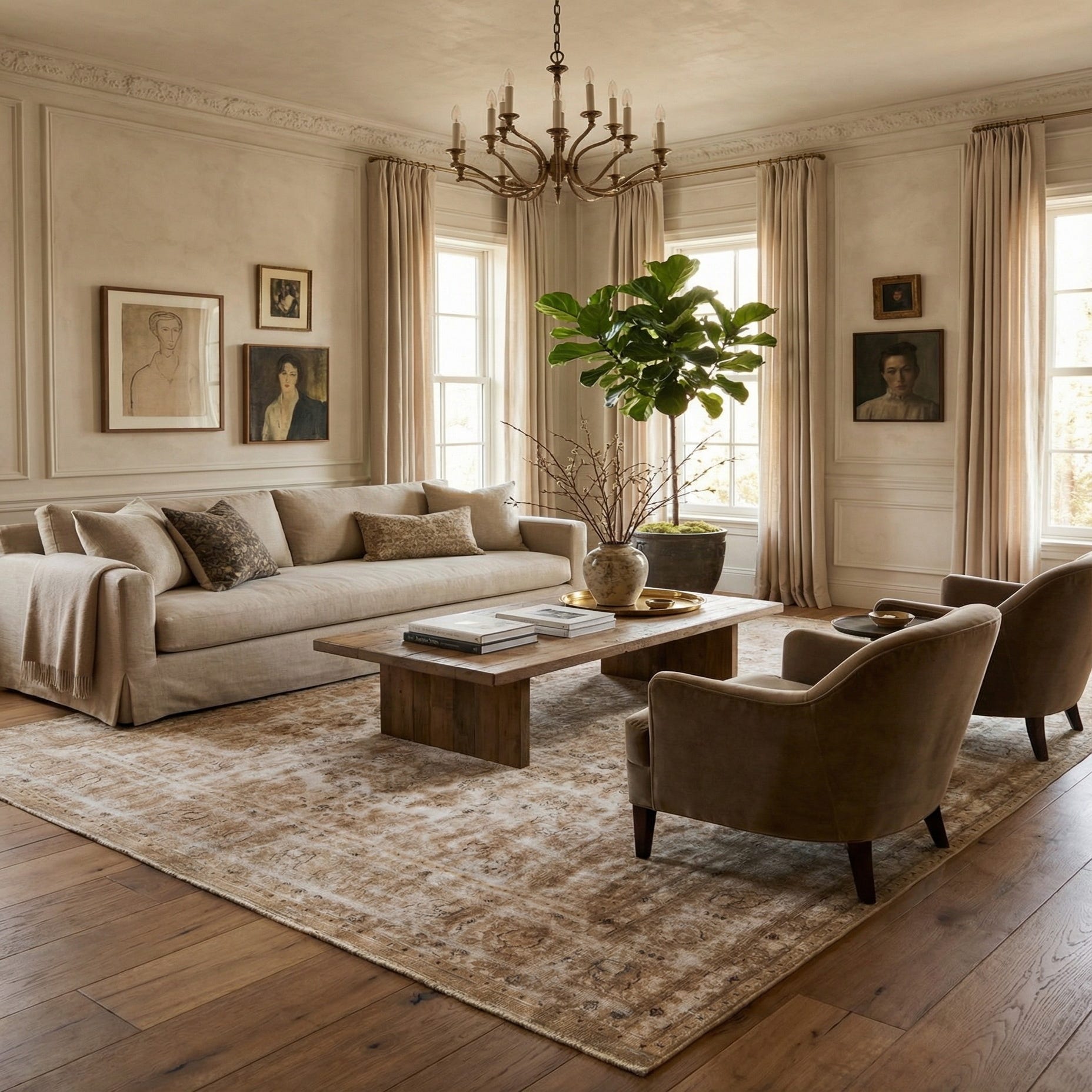 Primary color is Light Brown. Colors in this rug include: Light Brown, Brown, Ivory.