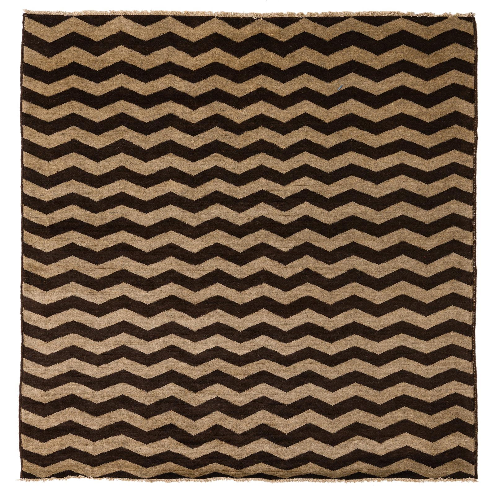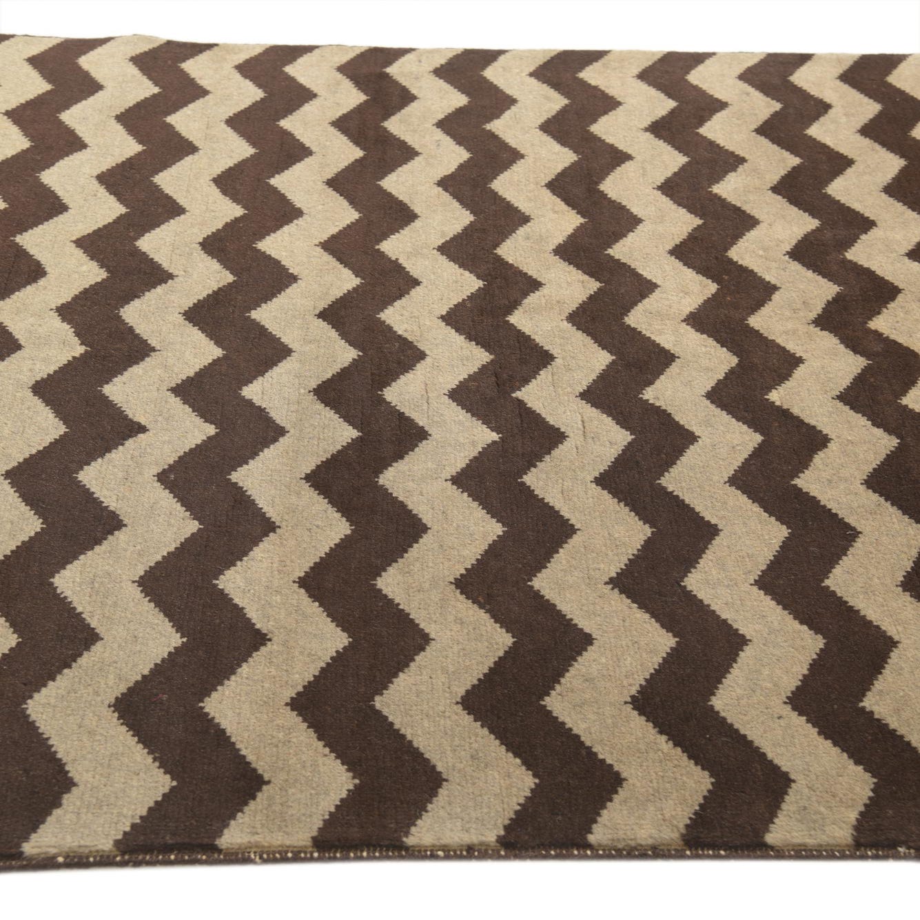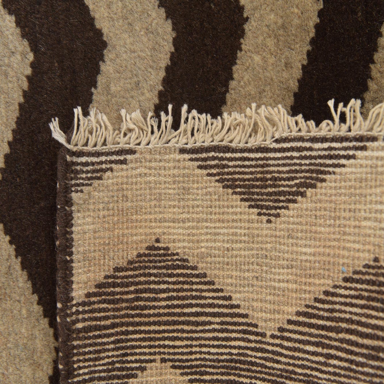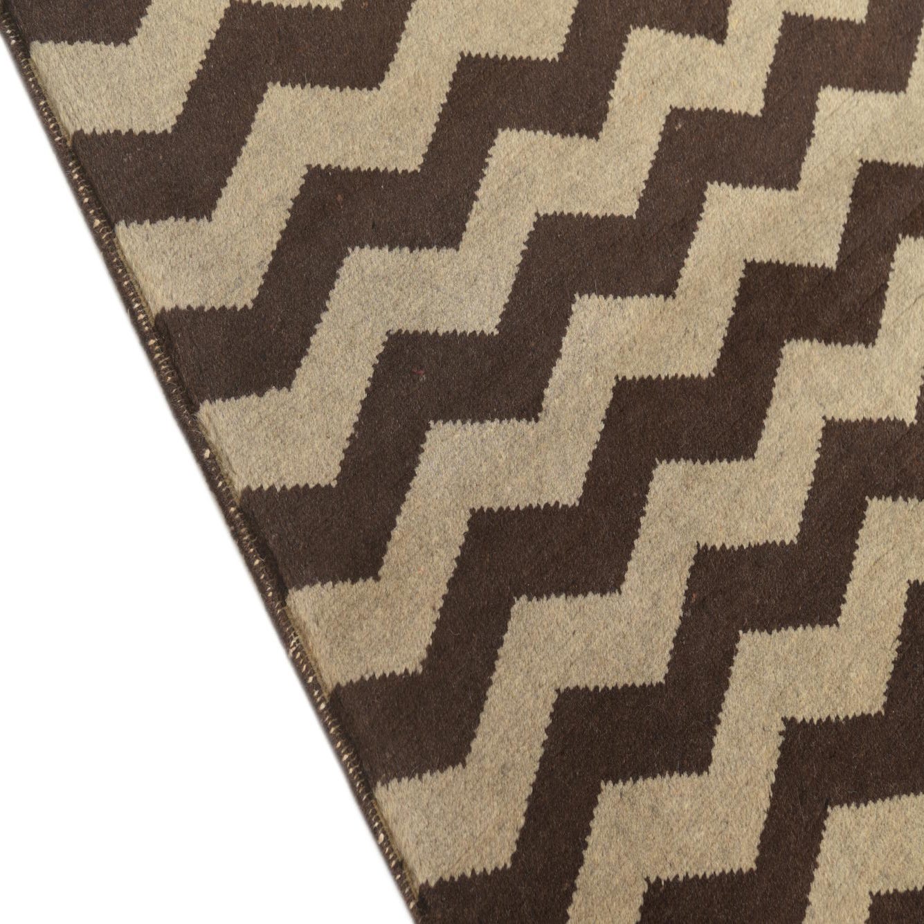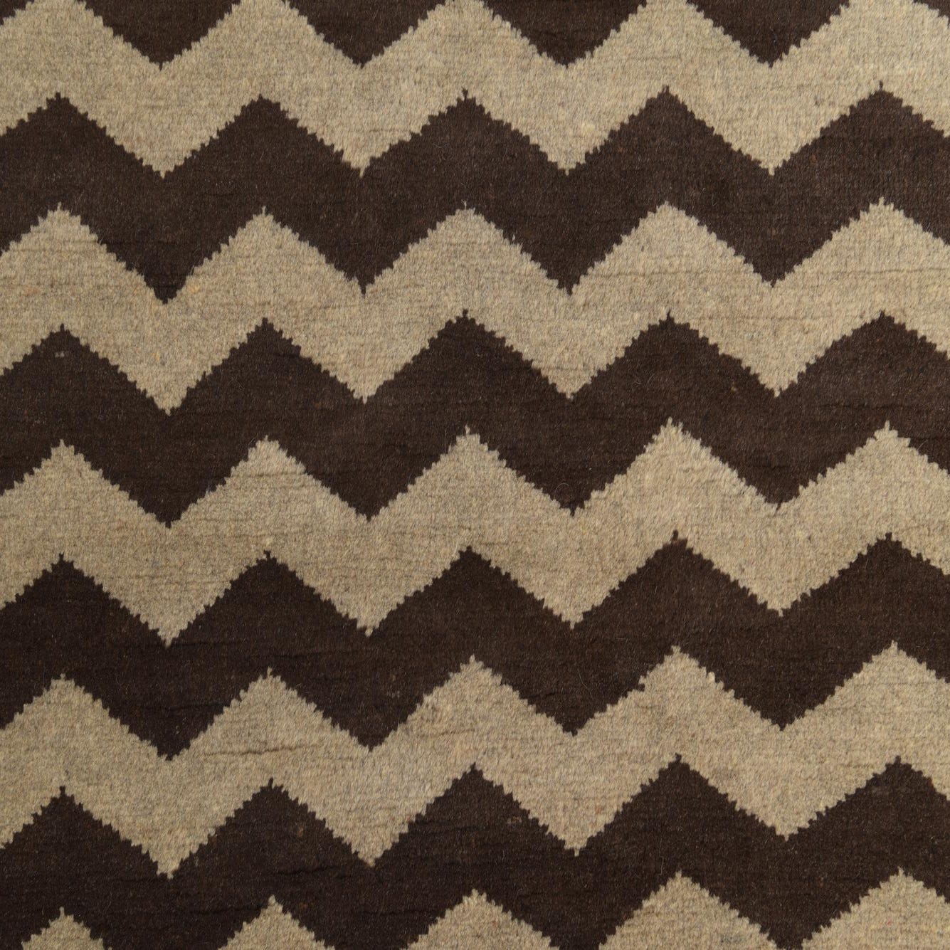 A bold zigzag pattern rolls across this hand-knotted rug in alternating bands of light brown and deep brown. The chevron motif reads graphic and orderly, while the hand-spun wool pile gives each stripe a slightly textured, tactile finish. Run your hand across it and you’ll notice a dense, resilient weave with a soft, natural wool nap that offers a comfortable underfoot feel and clear color contrast between the two brown tones. Construction is hand-knotted from 100% hand-spun wool, so the pattern has crisp edges and a subtle variation that reflects the handcraftsmanship.