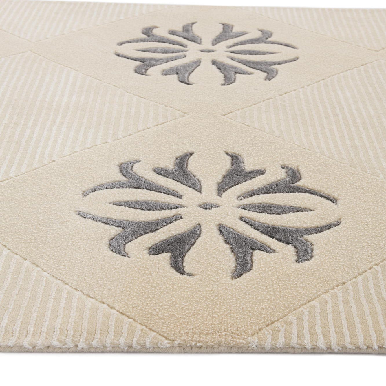 Primary color is Light Cream. Colors in this rug include: Light Cream, Silver.