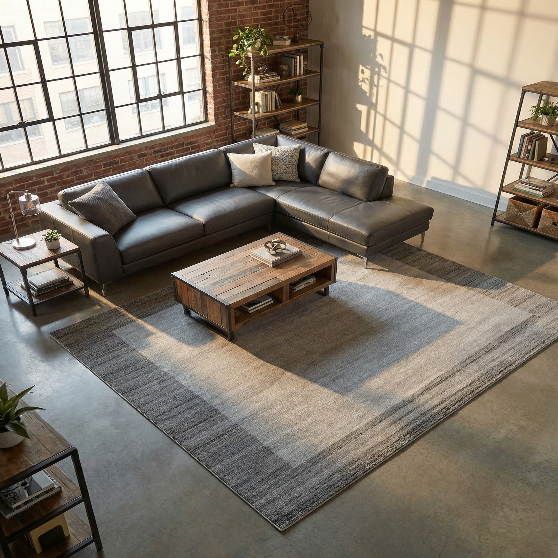 Machine made from 100% polypropylene, the surface has a low, dense pile that feels smooth underfoot and holds a tidy silhouette beneath furniture. The muted gray and beige tones allow the rug to anchor living areas, define a dining space, or add a calm foundation to a large bedroom. It complements mid-century and contemporary furnishings, Scandinavian minimalism, or a neutral coastal scheme.